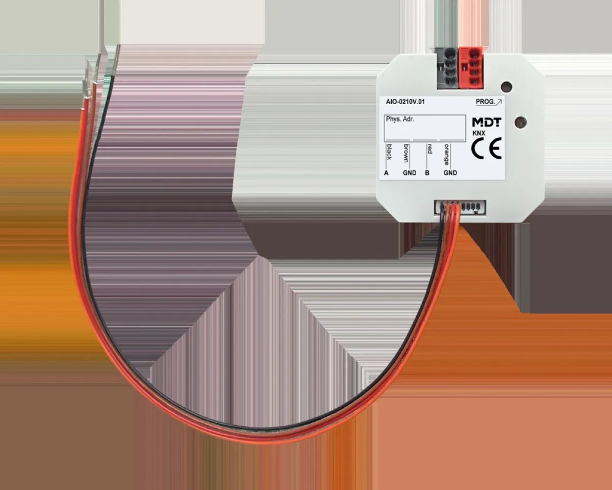 Der MDT AIO-0210V.01 eröffnet neue Möglichkeiten in der Gebäudesteuerung: Nutzen Sie das Modul zur präzisen Regelung von Lüftungsanlagen, zur exakten Drehzahlerfassung von Ventilatoren oder zur flexiblen Einbindung von Messwerten. Die schnelle Applikationsprogrammierung (Long-Frame-Support ab ETS5) erleichtert die Inbetriebnahme, während der integrierte Busankoppler für eine nahtlose Einbindung ins KNX-System sorgt.