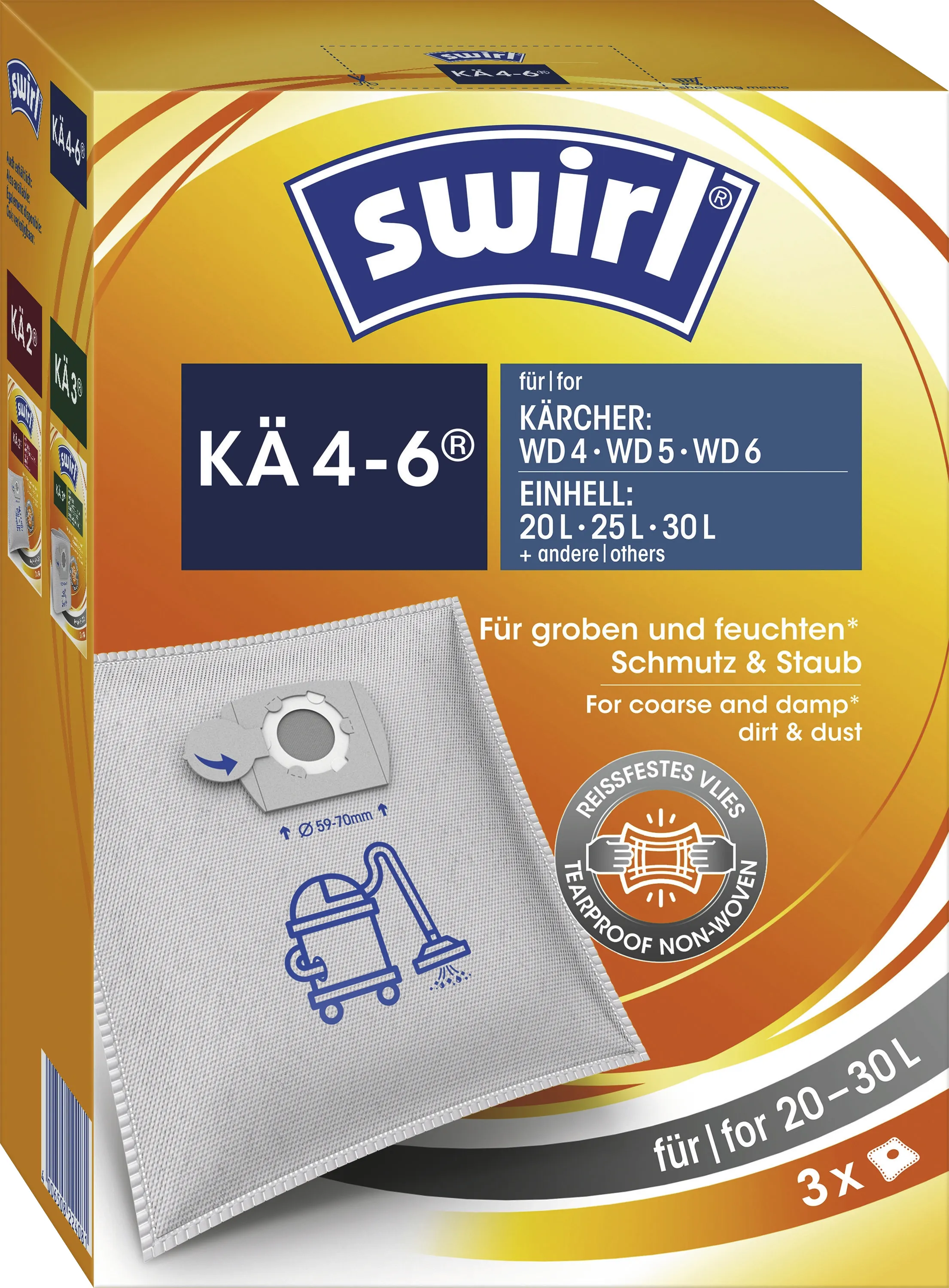 Swirl Staubsaugerbeutel KÄ 4-6 für Kärcher WD 4/5/6 & Einhell 20-30L, 3 Stück, 3-lagiges Vlies