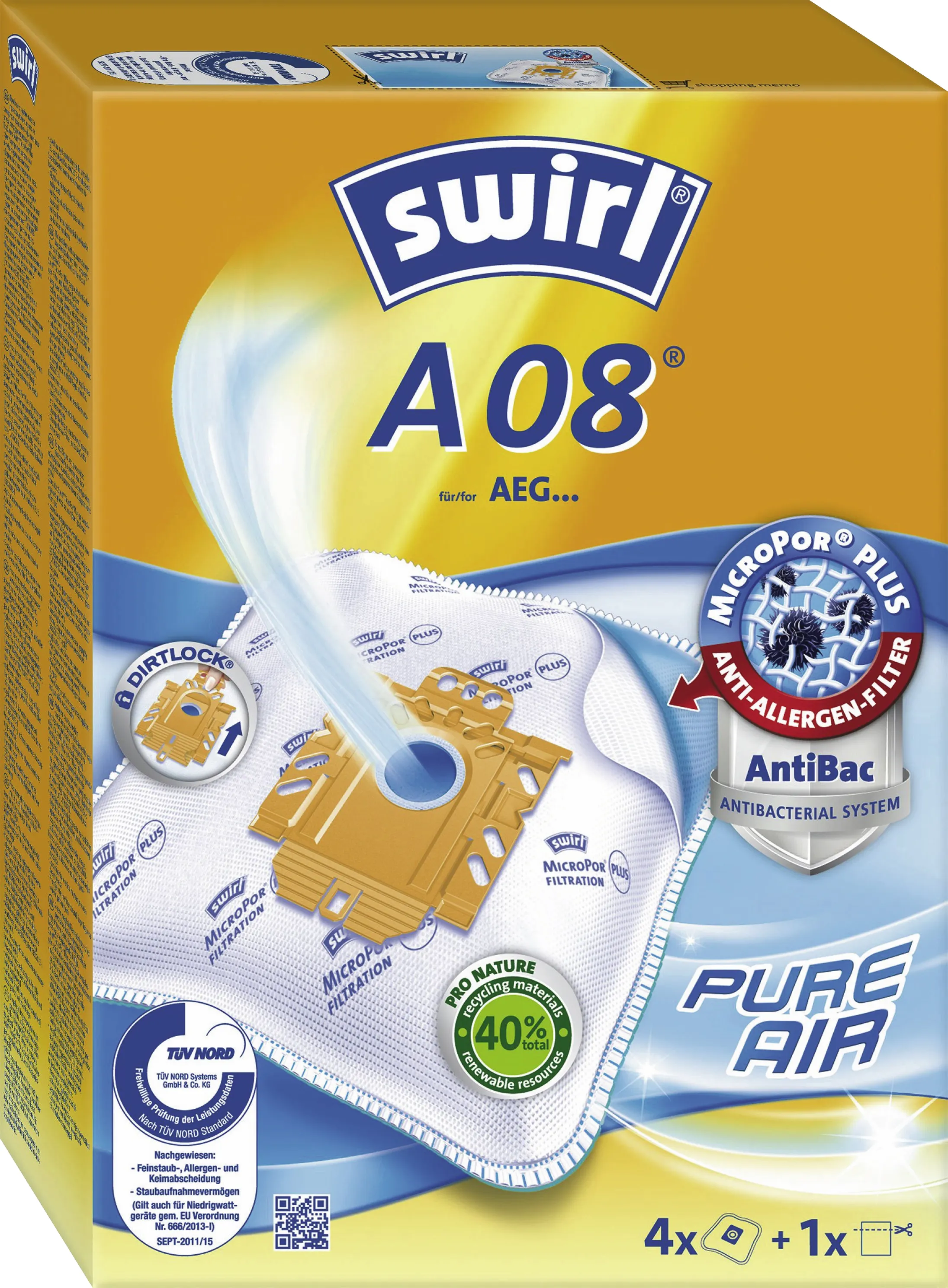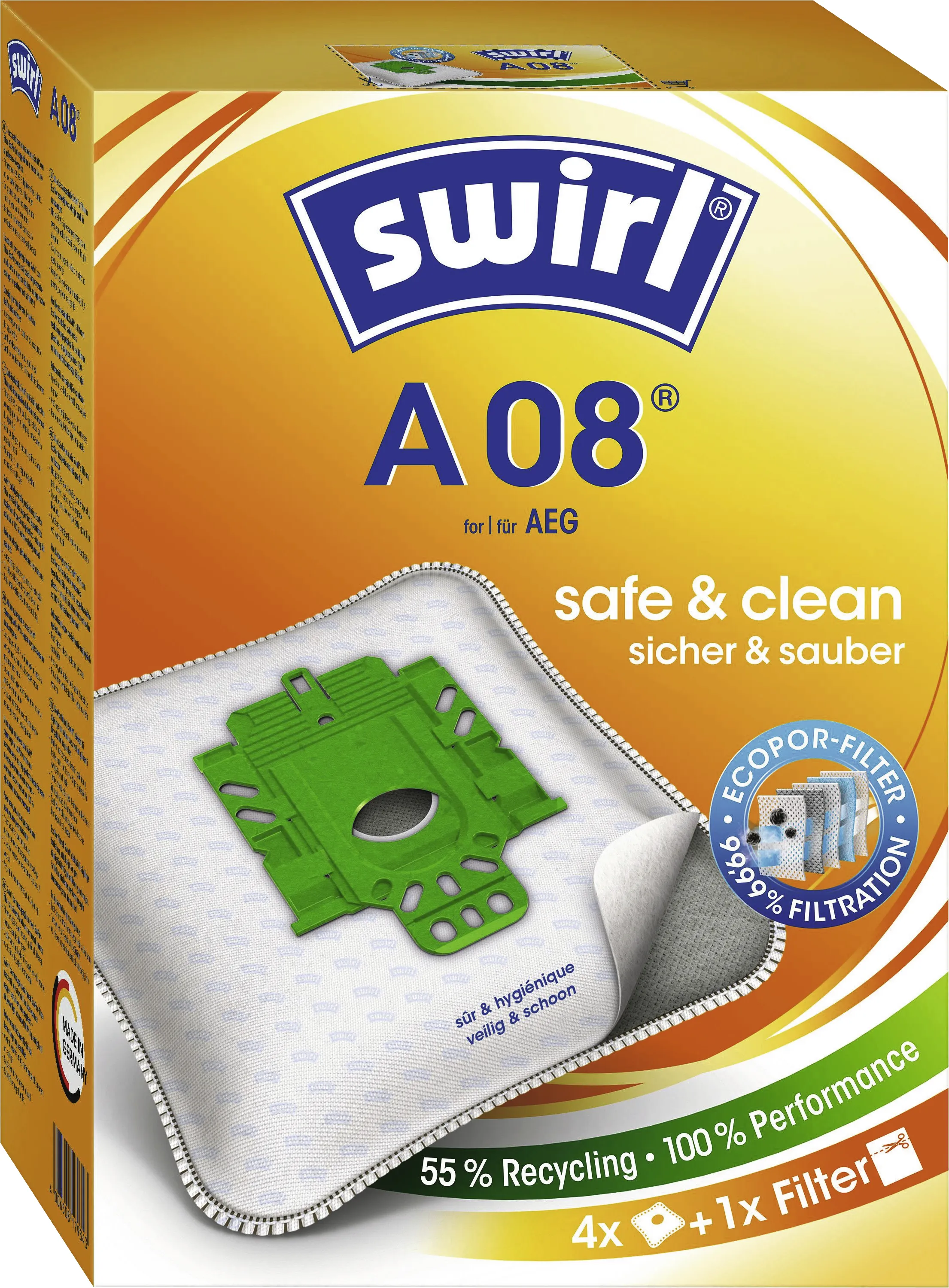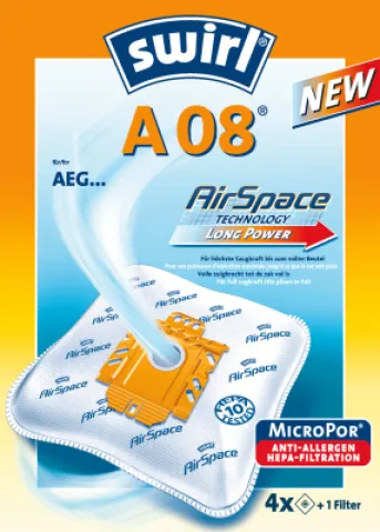 Swirl Staubsaugerbeutel A08/A09 MP Plus AirSpace, für AEG Vampyr TC, 4 Stück