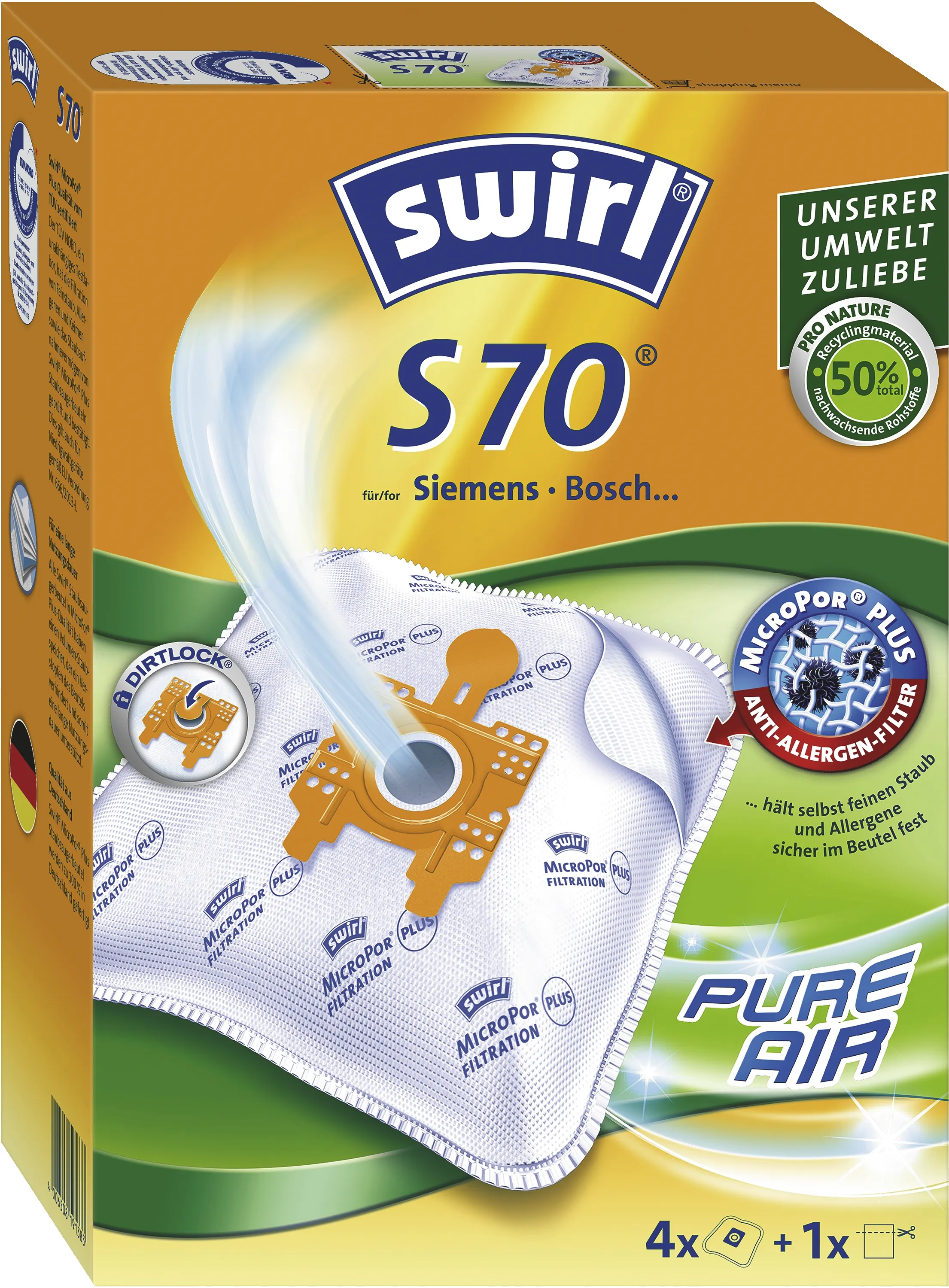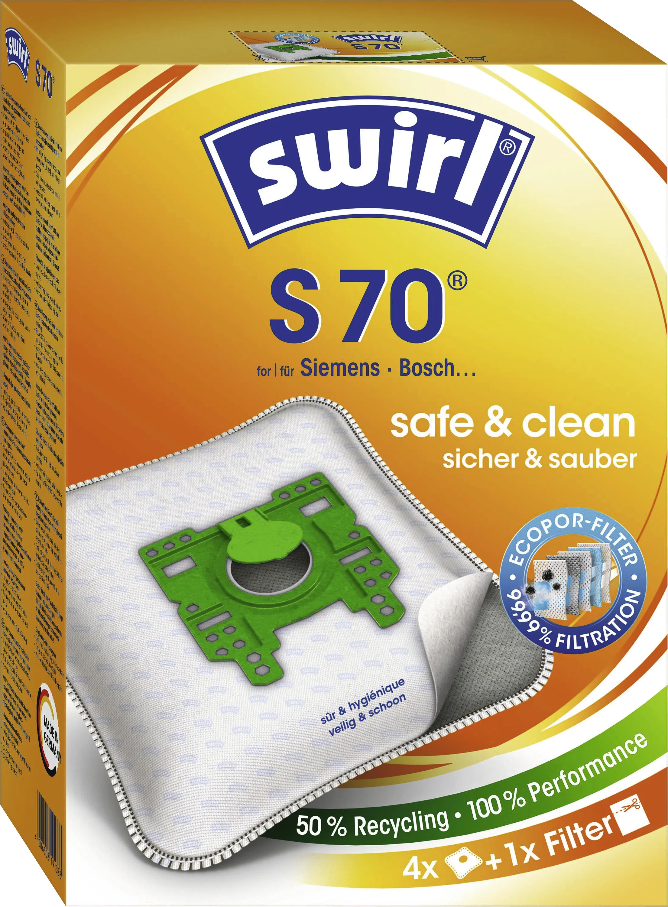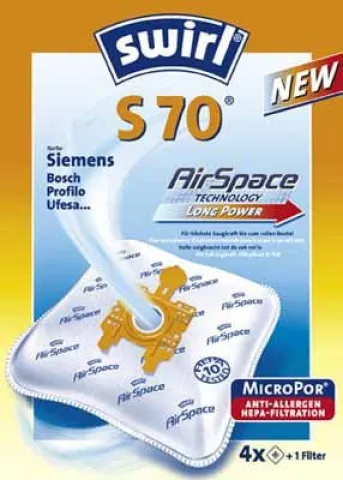 Swirl Staubsaugerbeutel S 70 EcoPor für Siemens/Bosch, MicroPor Plus Filter, 4 Stück
