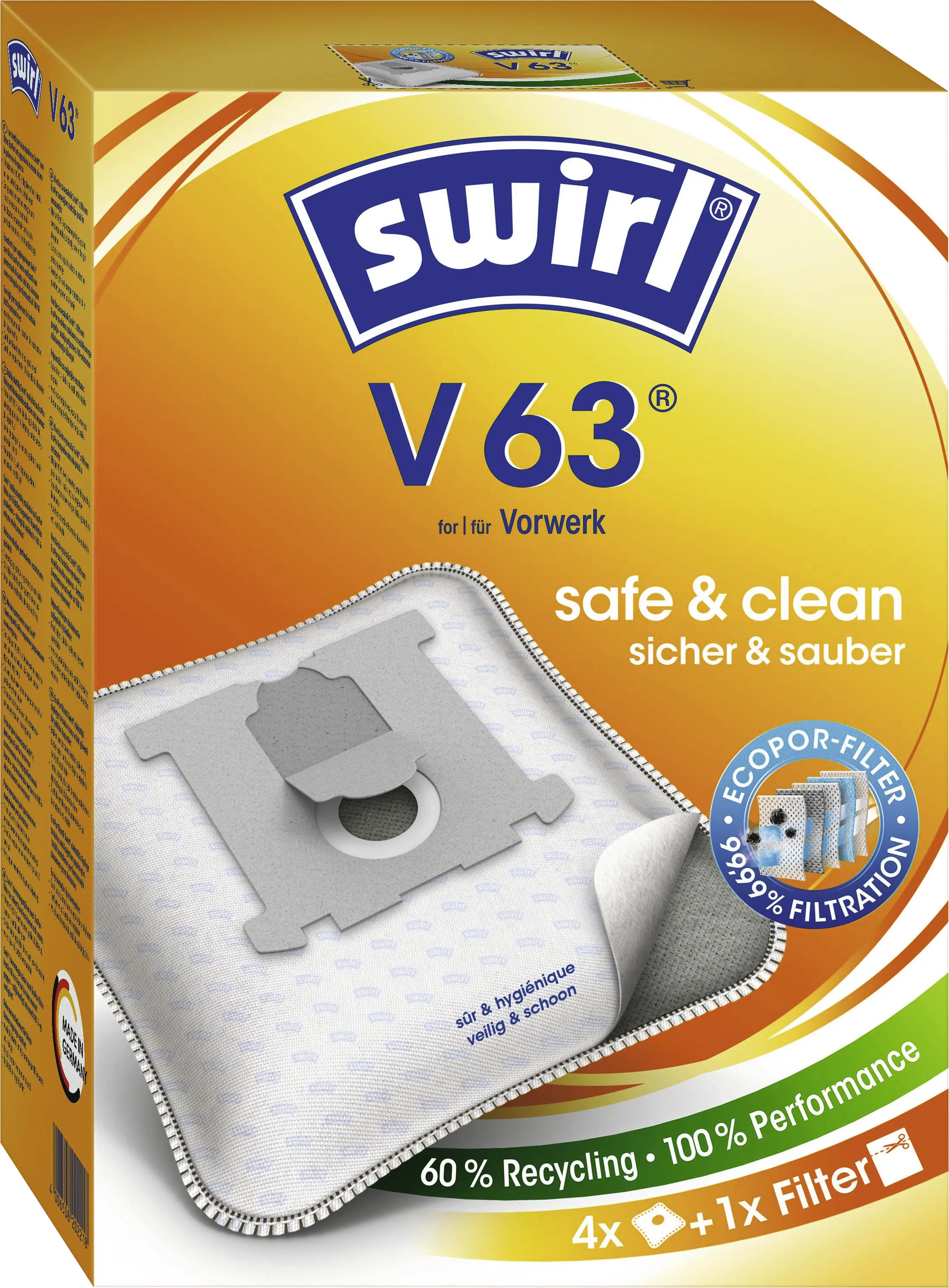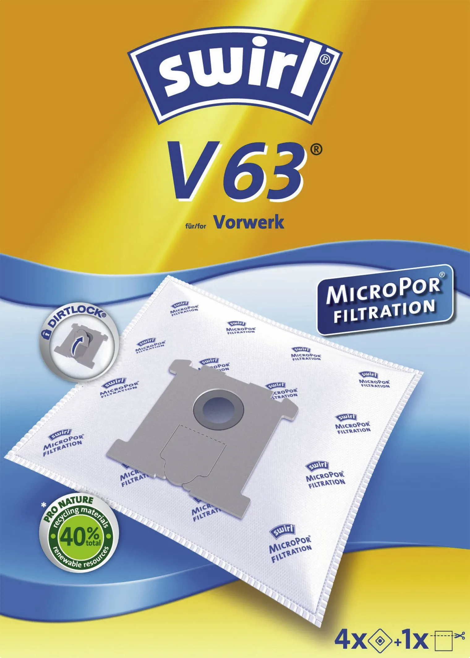 Swirl Staubsaugerbeutel V 63 für Vorwerk Tiger VK 250/251, MicroPor Plus, 4 Stück