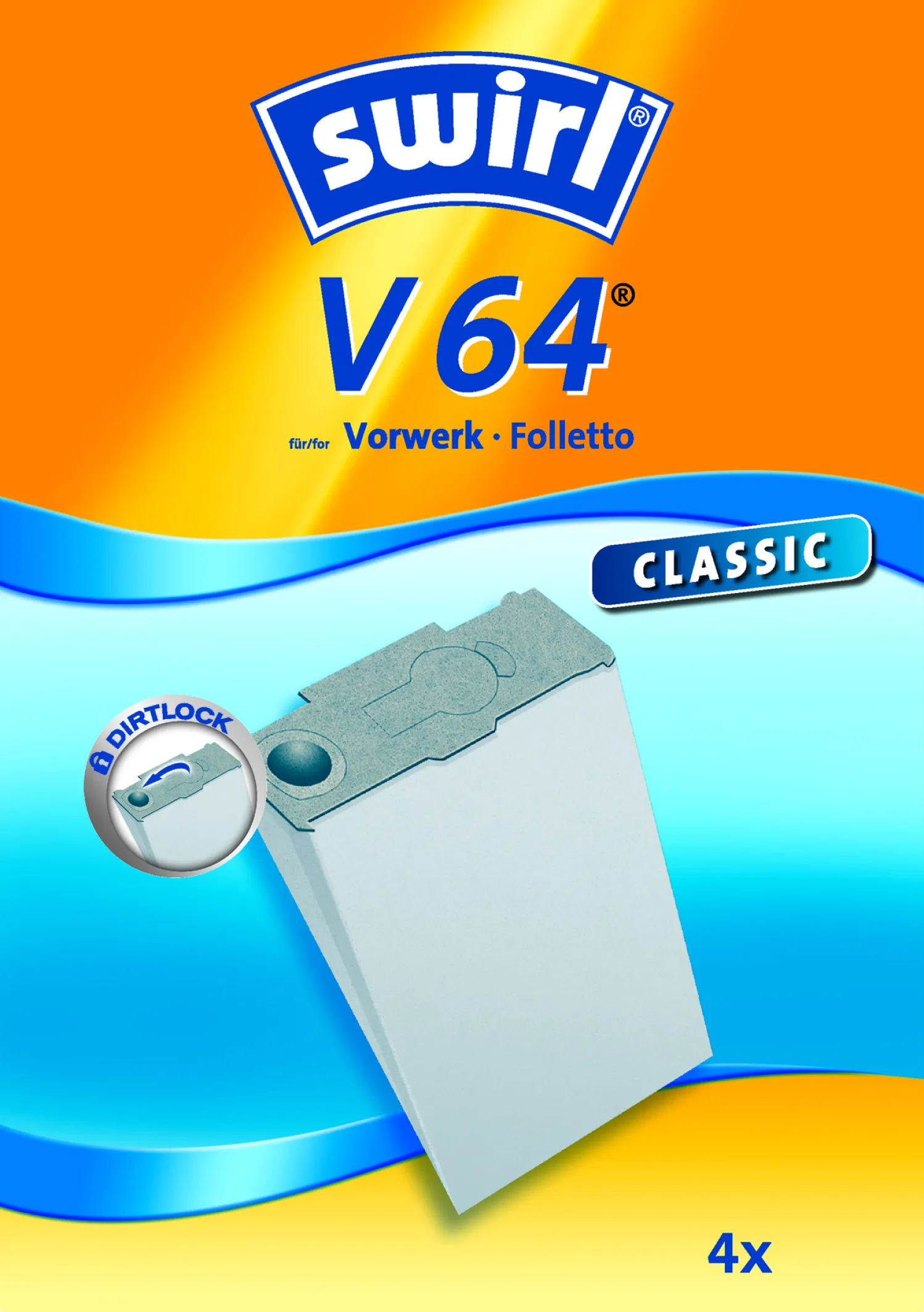 Die Swirl V 64 Staubsaugerbeutel wurden speziell für anspruchsvolle Haushalte entwickelt. Sie garantieren zuverlässige Staubabscheidung und stärken die Leistung Ihres Vorwerk Staubsaugers nachhaltig. Dank der mehrfachen Filterschichten wird selbst feinster Staub sicher gebunden und Ihr Raumklima spürbar verbessert. Der praktische Dirtlock® Staubverschluss verschließt den vollen Beutel zuverlässig – so gelingt der Beutelwechsel sauber und hygienisch.