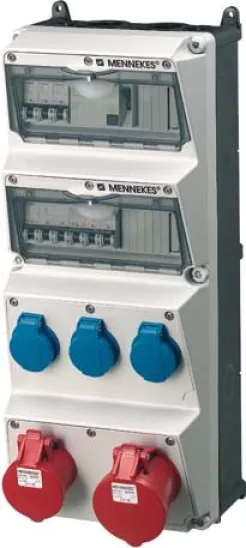 Die Mennekes AMAXX 940080 CEE-Steckdosen-Kombination IP44 bietet eine professionelle Lösung für effiziente und sichere Energieverteilung in Werkstatt, Industrie und auf der Baustelle. Mit einer einzigen Zuleitung versorgen Sie sowohl zwei CEE-Steckdosen (1x 16A, 1x 32A, jeweils 5-polig, 400V) als auch drei geschützte SCHUKO-Steckdosen und sparen so Zeit und Installationsaufwand.