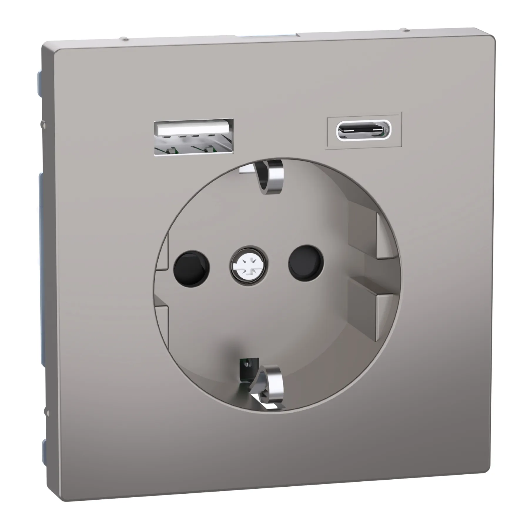 Die MERTEN MEG2367-6050 Schuko Steckdose mit USB Ladegerät in edlem Nickelmetallic vereint klassische Stromversorgung mit innovativer USB-Technik – für einfaches und simultanes Aufladen von Smartphone, Tablet oder anderen USB-Geräten. Diese moderne Steckdose ist die perfekte Lösung für Haushalte, Büros oder Hotels, die Funktionalität und zeitgemäßes Design wünschen.