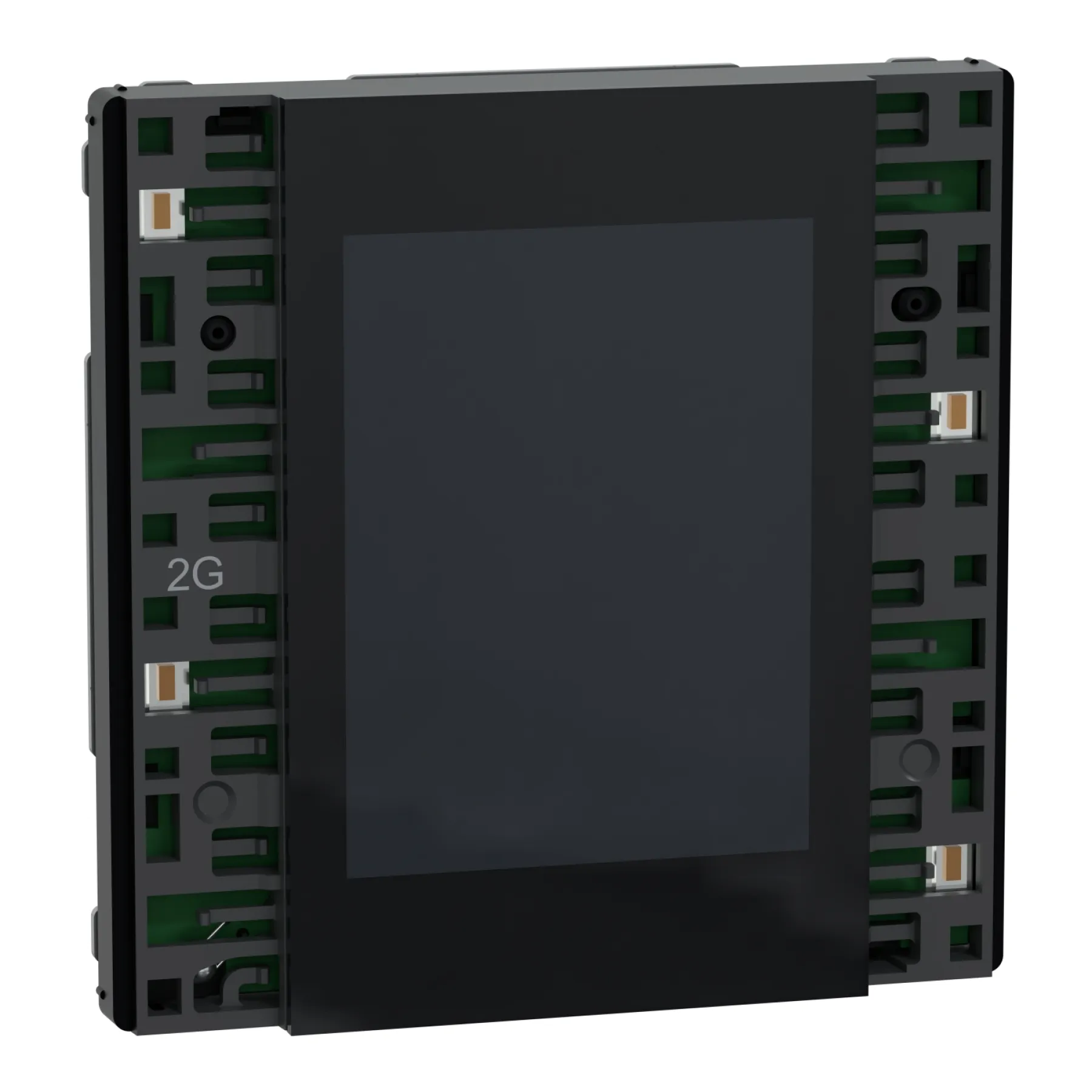 Das Modul besteht aus robustem Thermoplast-Kunststoff und überzeugt durch seine kompakte Bauweise. Die Montage erfolgt unterputz mit einer minimalen Dosentiefe von 40 mm. Die digitale Beschriftung, vier Tasten und der Näherungssensor sorgen für ein modernes, personalisiertes Schalterlebnis.