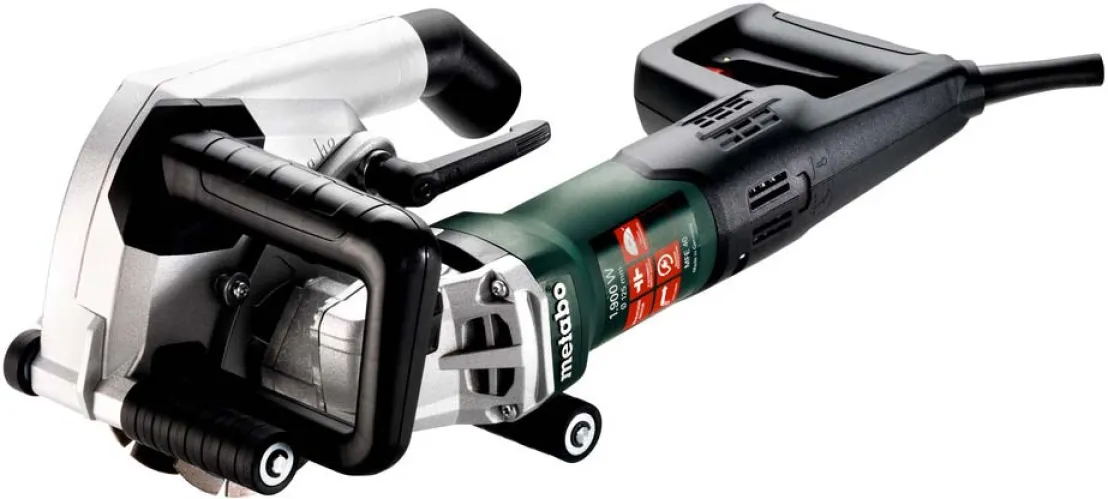 Für Elektroinstallationen zum Verlegen von Kabeln und Leerrohren unter Putz mit Frästiefen bis 40 mm, Aluminiumdruckguss-Haube mit Gummirollen, Tacho-Constamatic (TC)-Vollwellenelektronik, LED-Signal informiert über Überlastung bzw. aktiven Wiederanlaufschutz, Metabo S-automatic Sicherheitskupplung: mechanisches Entkoppeln des Antriebs bei Blockieren der Scheibe für sicheres Arbeiten, Schnitttiefe einstellbar 10 - 40 mm, Abgabeleistung 1120 W, Leerlaufdrehzahl 5000 /min, Drehzahl bei Nennlast 4200 /min, Kabellänge 4 m