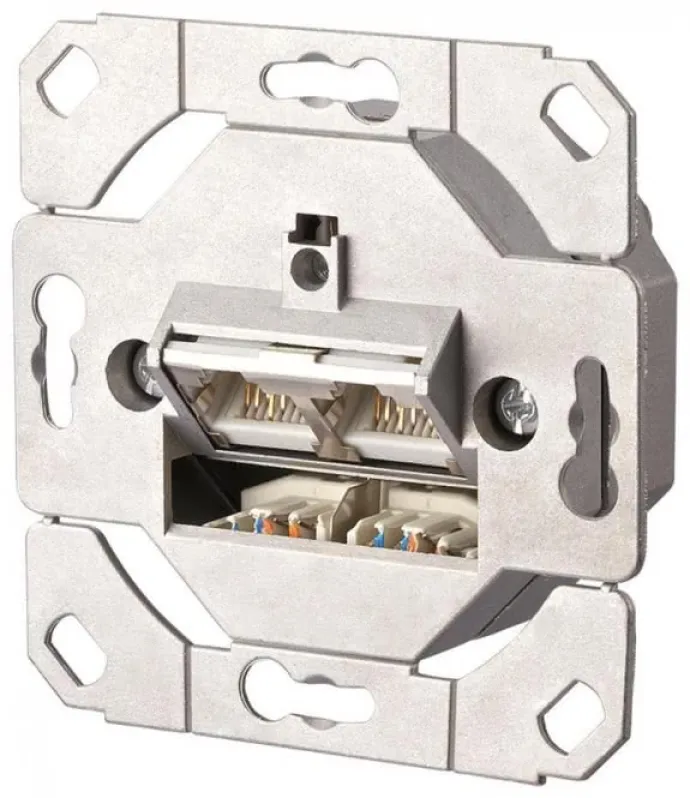 Die Anschlussdose bietet zwei geschirmte RJ45-Ports und erfüllt höchste Normen für Ethernet bis 10 Gigabit. Dank ihrer robusten, metallischen Bauweise und der flexiblen Anschlussmöglichkeiten ist sie perfekt geeignet für Vielseitigkeit und eine langlebige Netzwerkinfrastruktur.