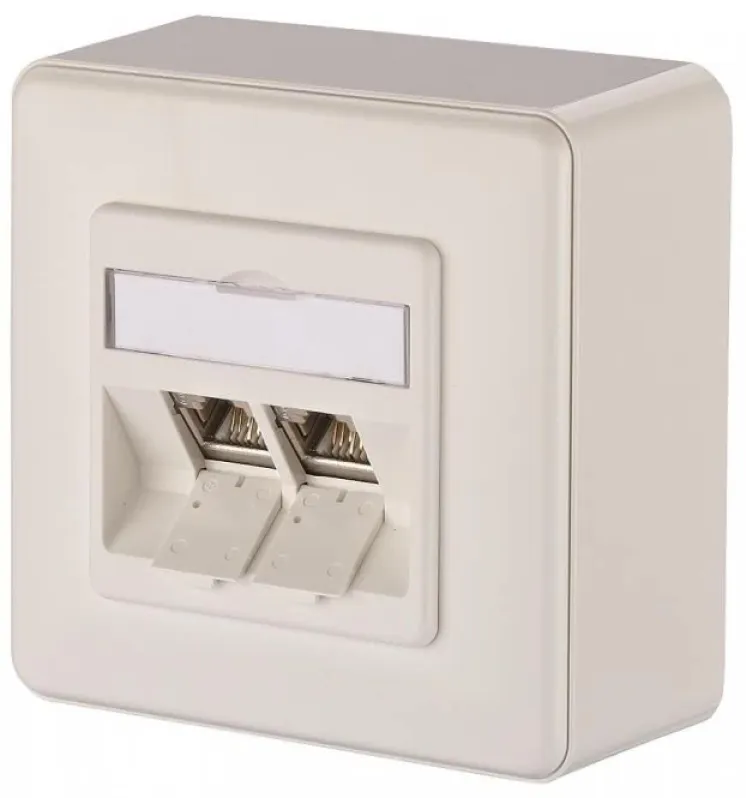 METZ CONNECT Anschlussdose 1309120002-E, Cat.6A Netzwerkdose Aufputz 2x RJ45 geschirmt, schräg
