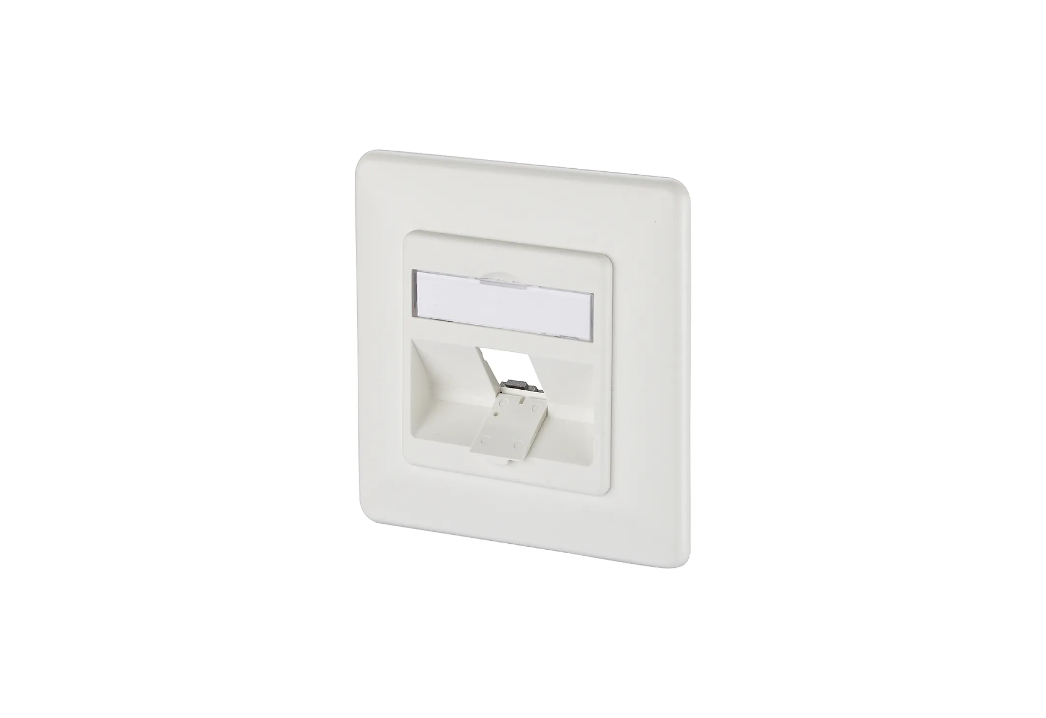 Die Anschlussdose bietet Platz für ein Keystone-Modul (nicht im Lieferumfang), das sich dank schräger Steckrichtung (45° nach unten) besonders einfach und sicher installieren lässt. So werden auch größere Stecker problemlos aufgenommen und Kabel vor Knicken geschützt. Die dezente, matt strukturierte Oberfläche in edlem Reinweiß (RAL 9010) fügt sich harmonisch in jede Raumgestaltung ein.