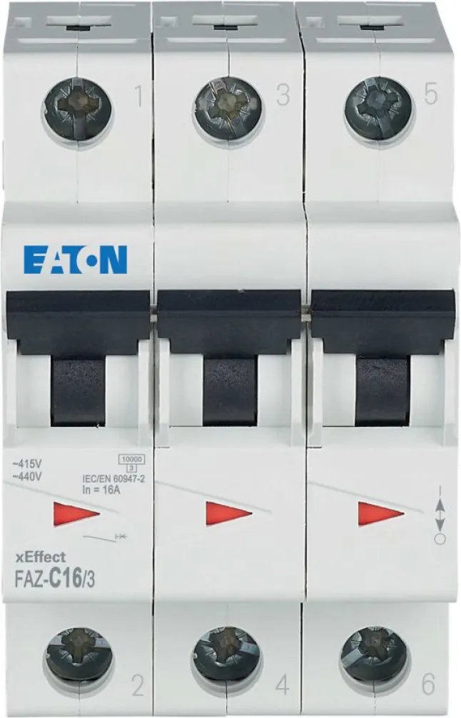 Mit einer Schaltleistung von bis zu 15 kA (nach IEC 60947-2) ist der EATON FAZ-C16/3 Leitungsschutzschalter bestens für energieintensive Bereiche geeignet. Professionelle Elektriker, Anlagenbauer und Betreiber von Gewerbeimmobilien setzen auf diesen Leitungsschutzschalter, um ihre Elektroinstallation zuverlässig und zukunftssicher abzusichern.