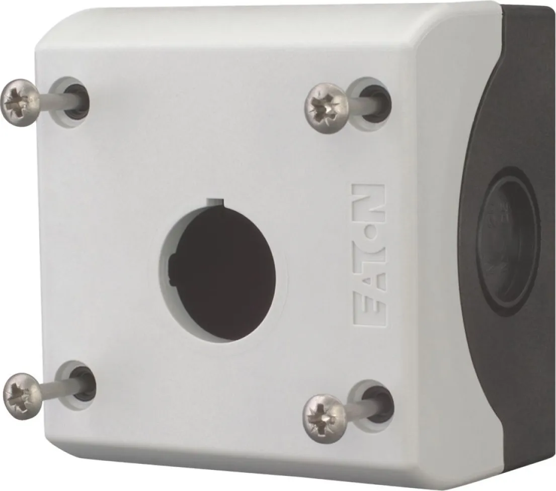 Das M22-I1 Aufbaugehäuse von EATON richtet sich an Profis, Elektrotechniker, Maschinenbauer und Anlagenbetreiber, die höchste Ansprüche an Bedienersicherheit und Widerstandsfähigkeit haben. Es ist mit allen gängigen Befehls- und Meldegeräten des RMQ-Systems sowie Leucht-, Druck- und Wahltastern mit 22,5mm Durchmesser kompatibel.