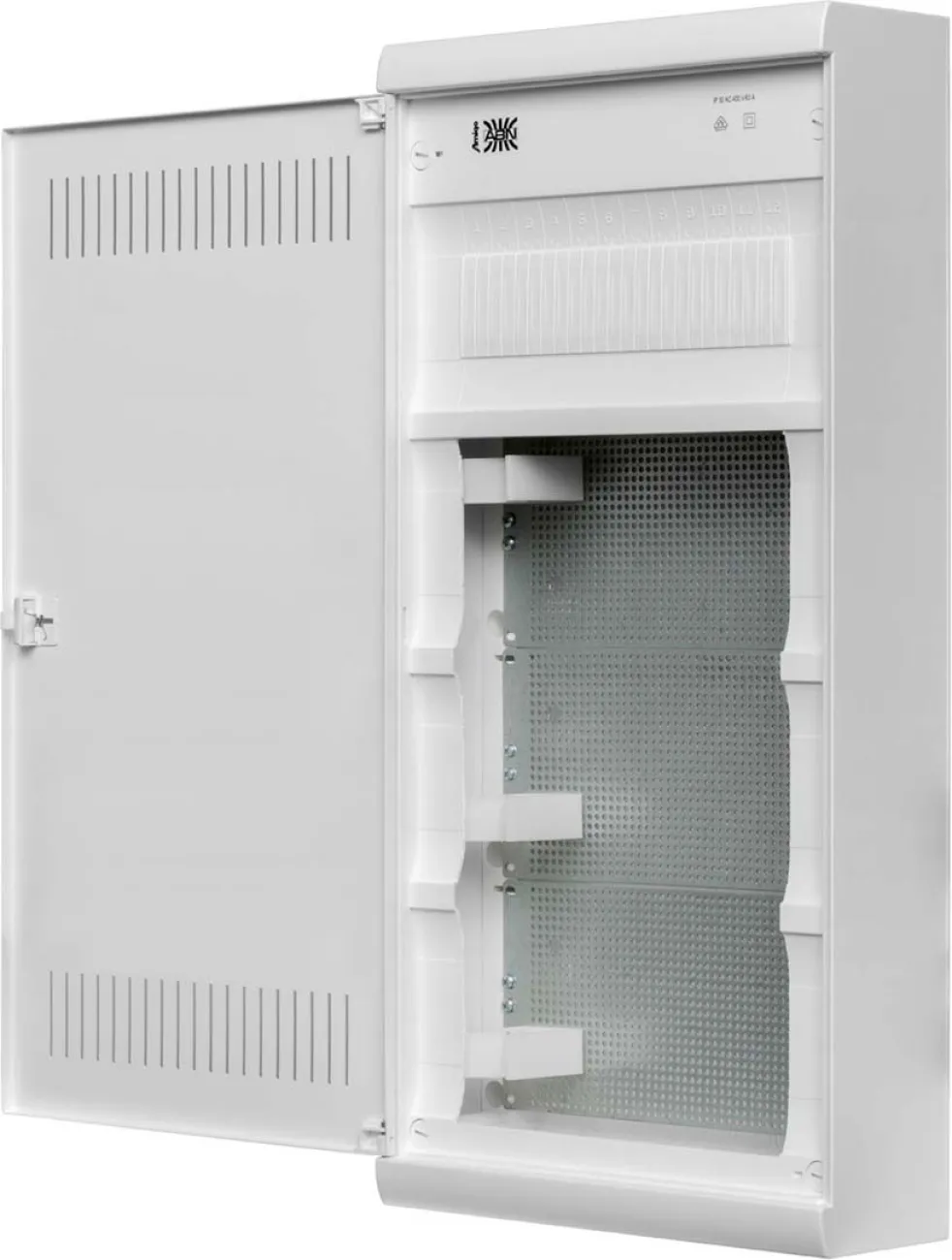 Mit vier Reihen à 12 Teilungseinheiten und einem integrierten 12-fach Patch Panel für Keystone-Module bietet der Multimediaverteiler ausreichend Platz für professionelle Netzwerk- und Stromverteilung. Die gelochte Montageplatte ermöglicht die einfache Integration von Telekommunikationsgeräten. Die geschlitzte Lüftungstür oben und unten gewährleistet eine effektive Wärmeableitung und schützt empfindliche Technik zuverlässig.