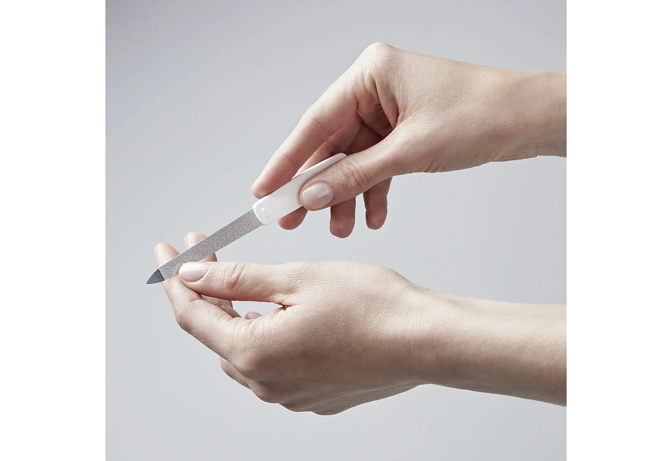 Die Anwendung ist unkompliziert: Feilen Sie Ihre Nägel mit der groben Seite auf die gewünschte Länge, formen und glätten Sie die Spitzen anschließend mit der feinen Seite. Mit der polierten Spitze reinigen Sie schwer zugängliche Stellen sanft und gründlich. Für eine gründliche Reinigung können Sie die Feile einfach unter Wasser mit einer weichen Bürste säubern.