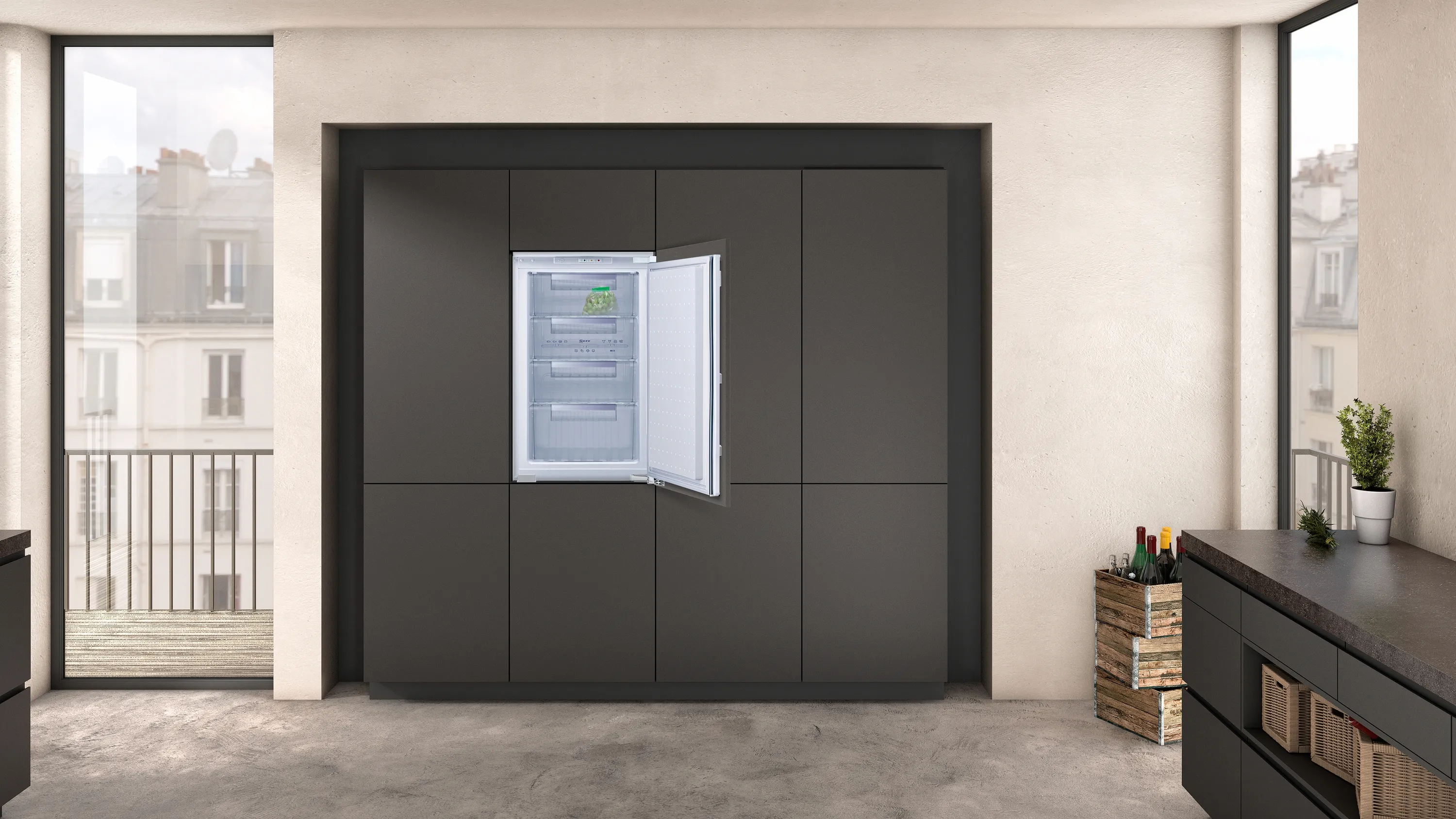 N 30 Einbau-Gefrierschrank - kann dank Tür-Dekorplatte auch individuell gestaltet werden.
