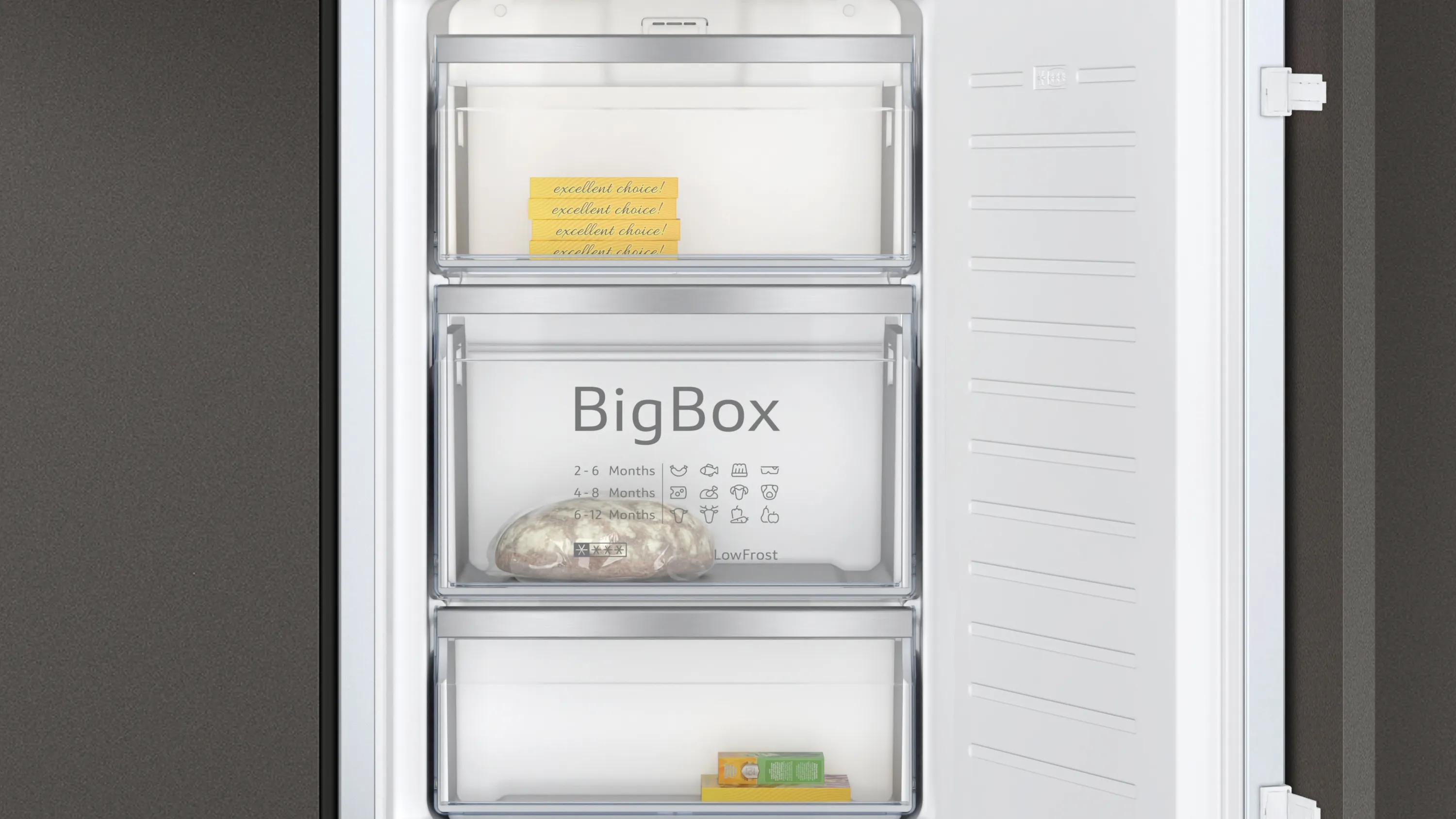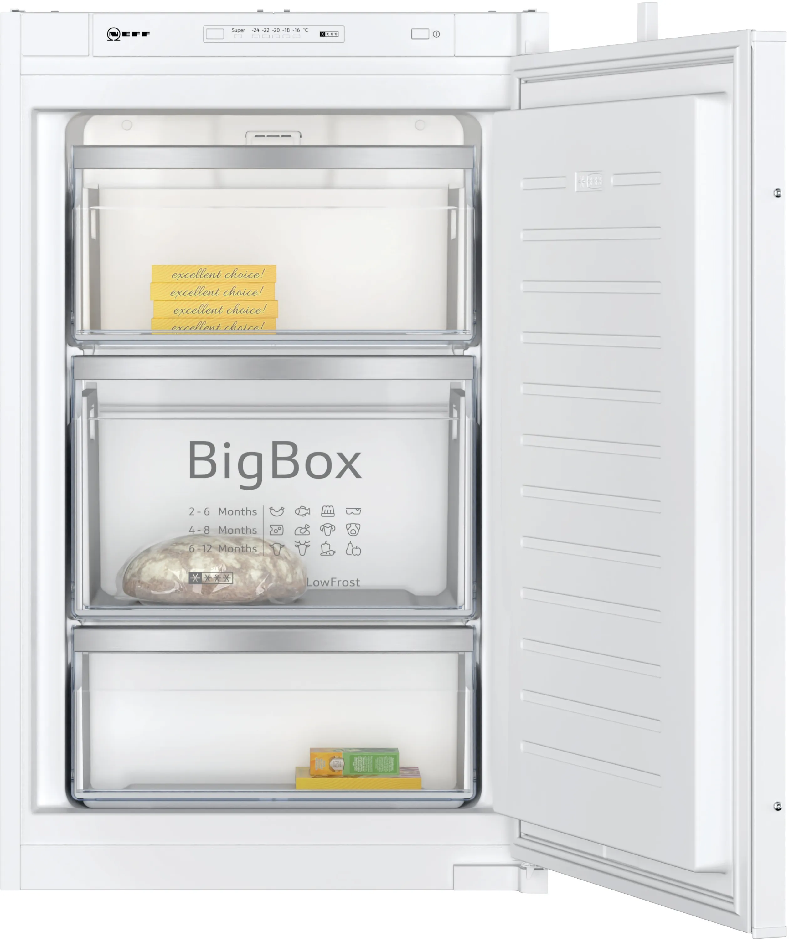 N 50 Einbau-Gefrierschrank - lässt sich besonders leicht abtauen, warnt bei Temperaturanstieg und seine Türen schließen sich sanft von selbst.