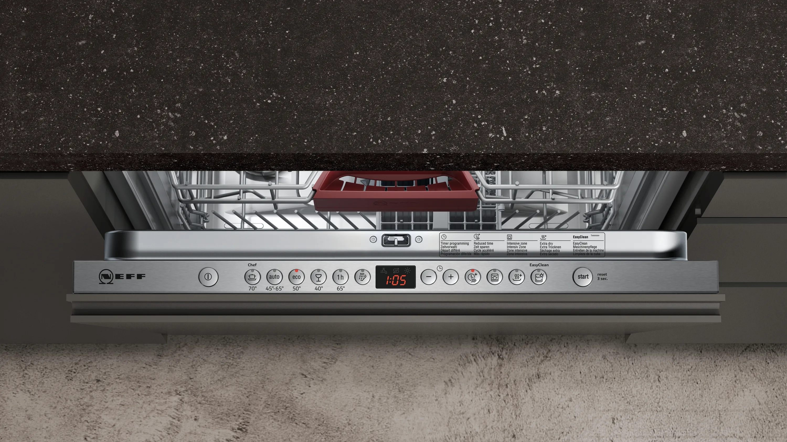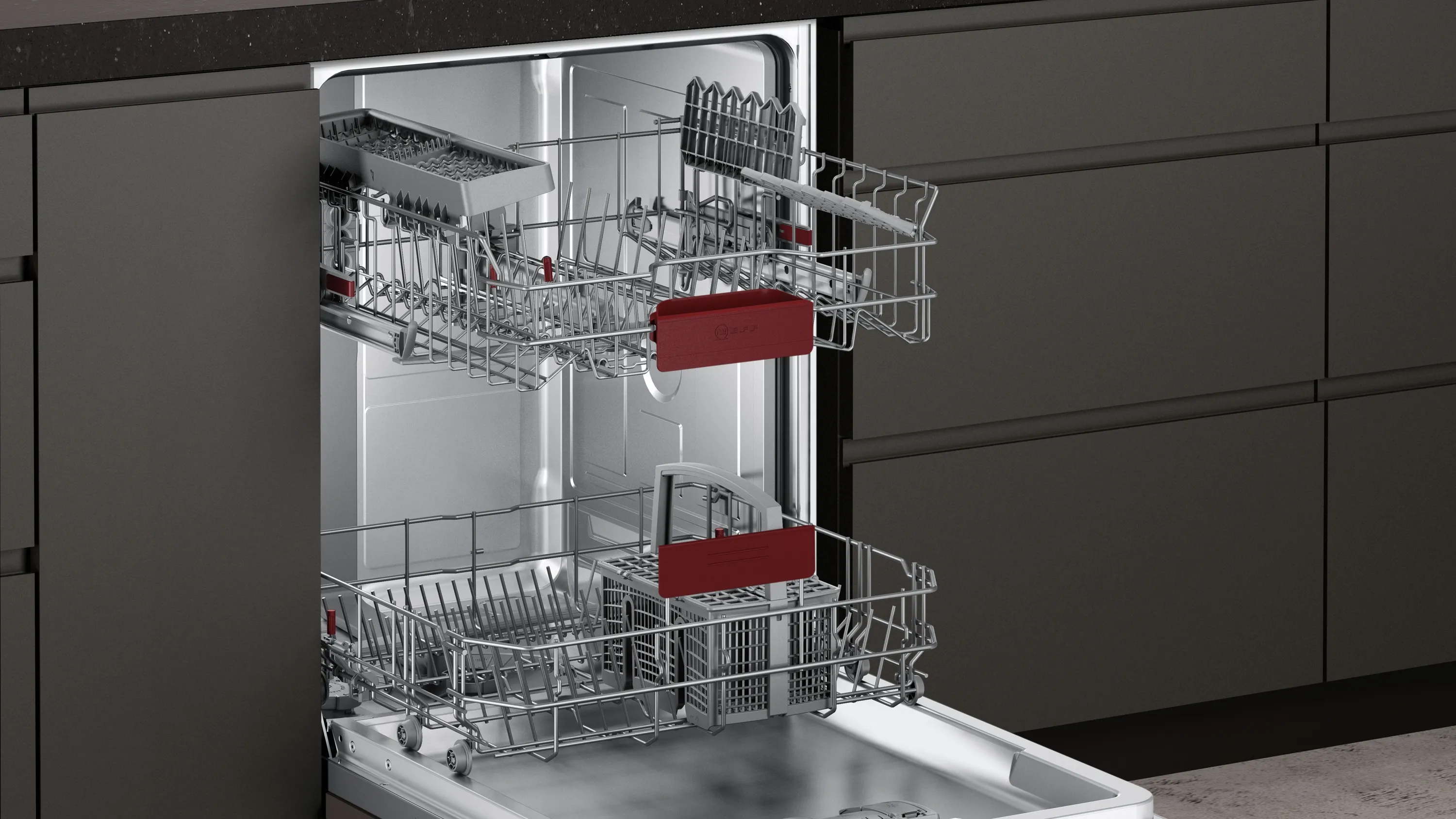 N 50 Geschirrspüler vollintegrierbar 60 cm S523J60X3E - Der extra hohe Geschirrspüler lässt sich flexibel beladen und zeigt an, wenn er in Betrieb ist.