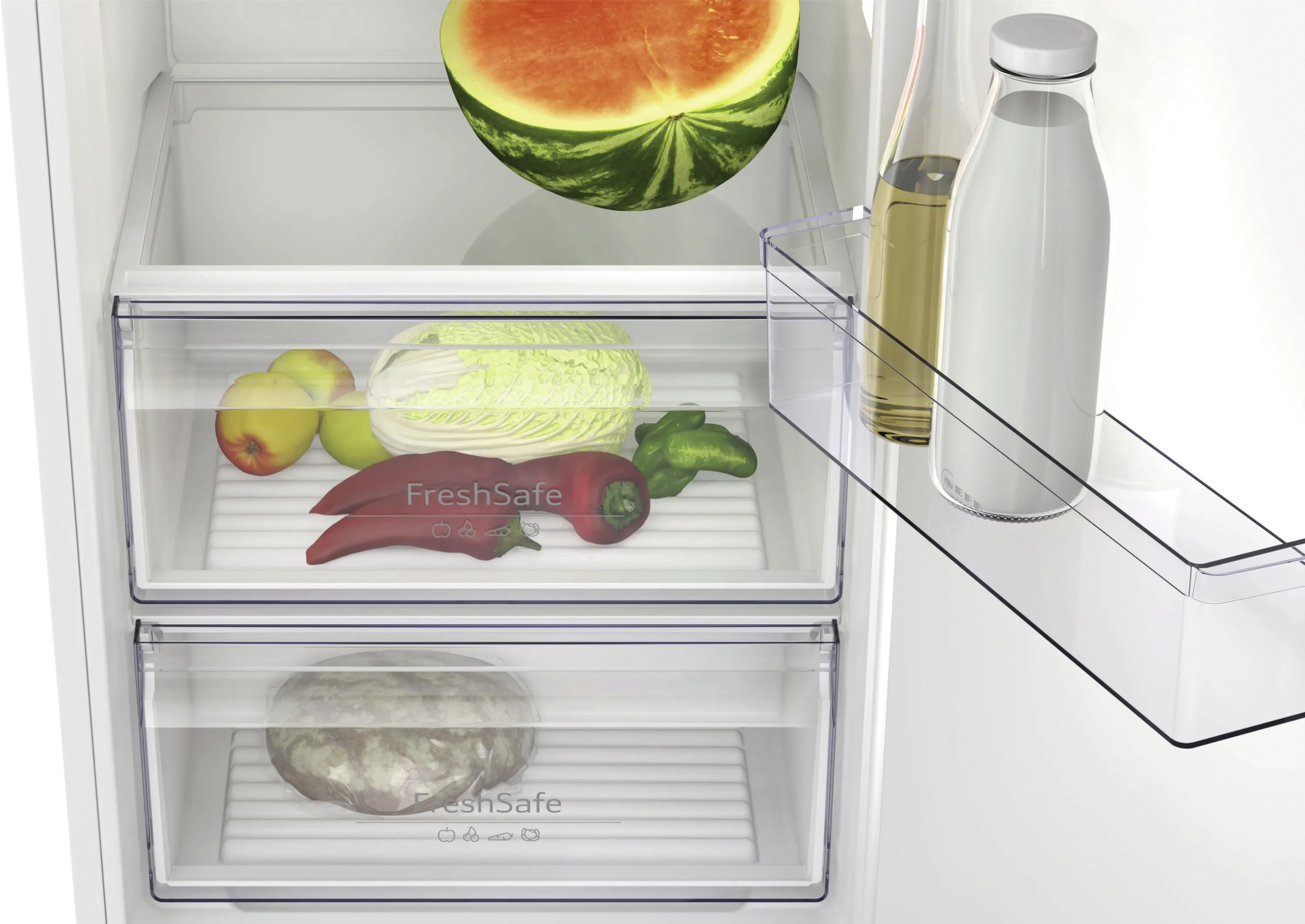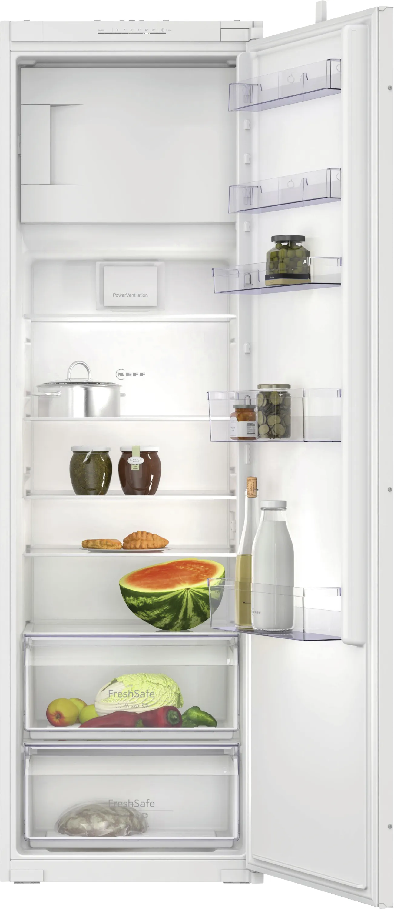 Der NEFF KI2821SE0 Einbau-Kühlschrank mit Gefrierfach überzeugt als moderne Kühl-Lösung für anspruchsvolle Küchen. Mit einem großzügigen Gesamtnutzinhalt von 280 Litern (246 l Kühlen, 34 l Gefrieren) bietet er viel Platz für frische Lebensmittel und Tiefkühlprodukte. Dank FreshSafe bleiben Obst und Gemüse in zwei separaten Frischeboxen länger knackig und aromatisch.
