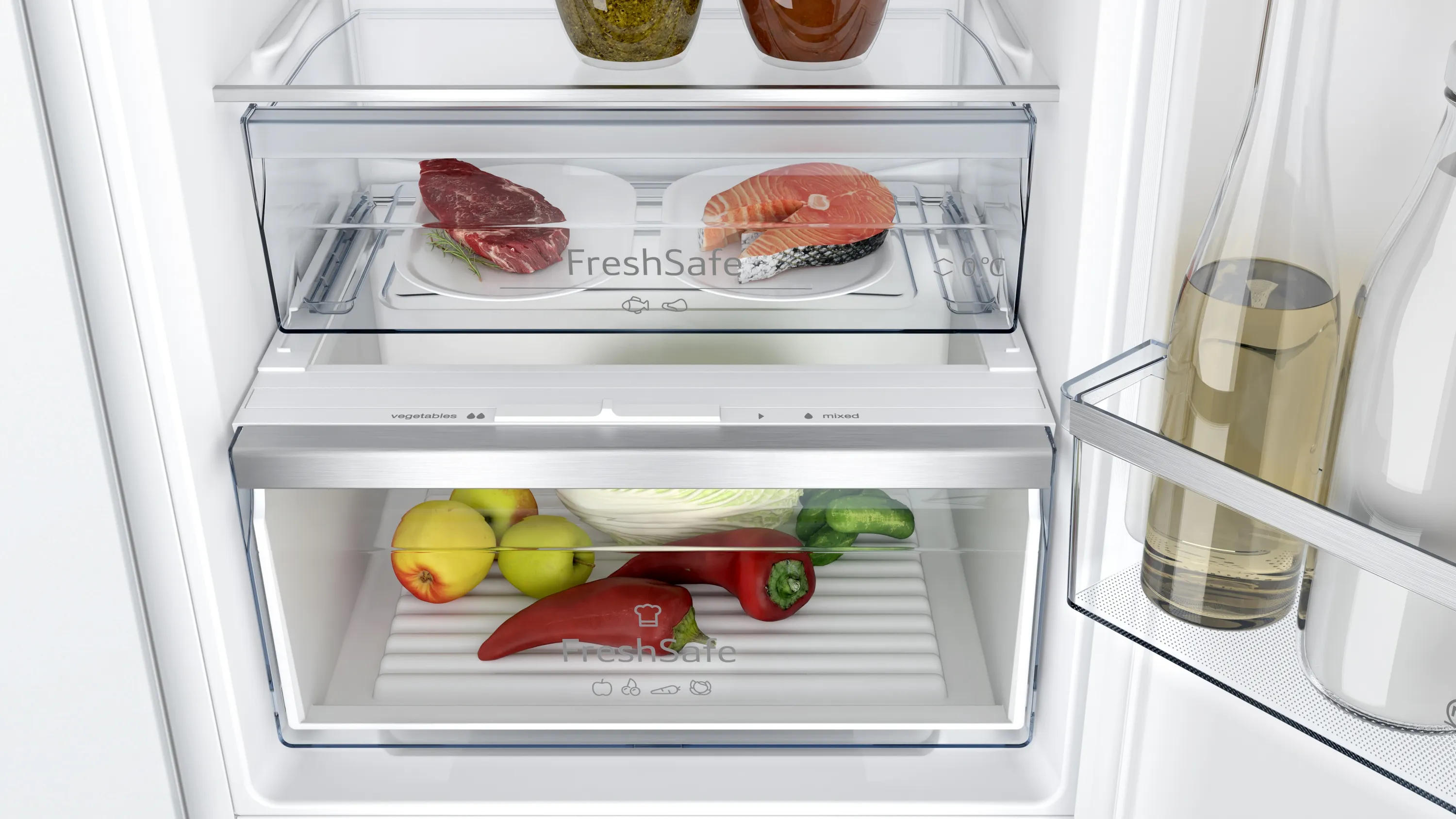 Die NEFF KI7862FE0 überzeugt durch ihre präzise elektronische Temperaturregelung, die sich bequem per LED ablesen lässt. So bleiben Ihre Lebensmittel immer im optimalen Temperaturbereich. Die durchdachte Innenarchitektur mit separaten Frischefächern schützt Vitamine und Aromen, während das Gefrierteil mit drei transparenten Schubladen die Vorratshaltung erleichtert.