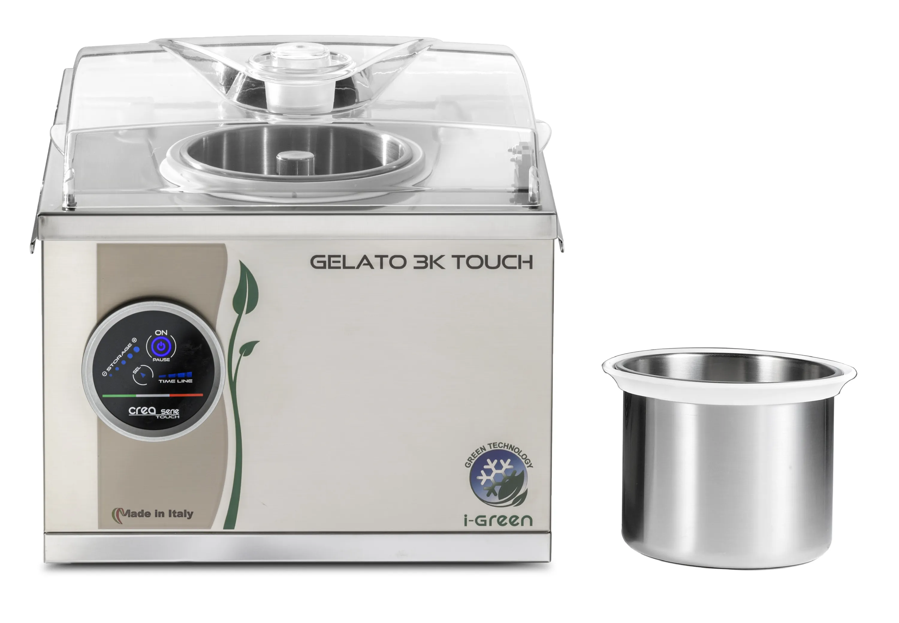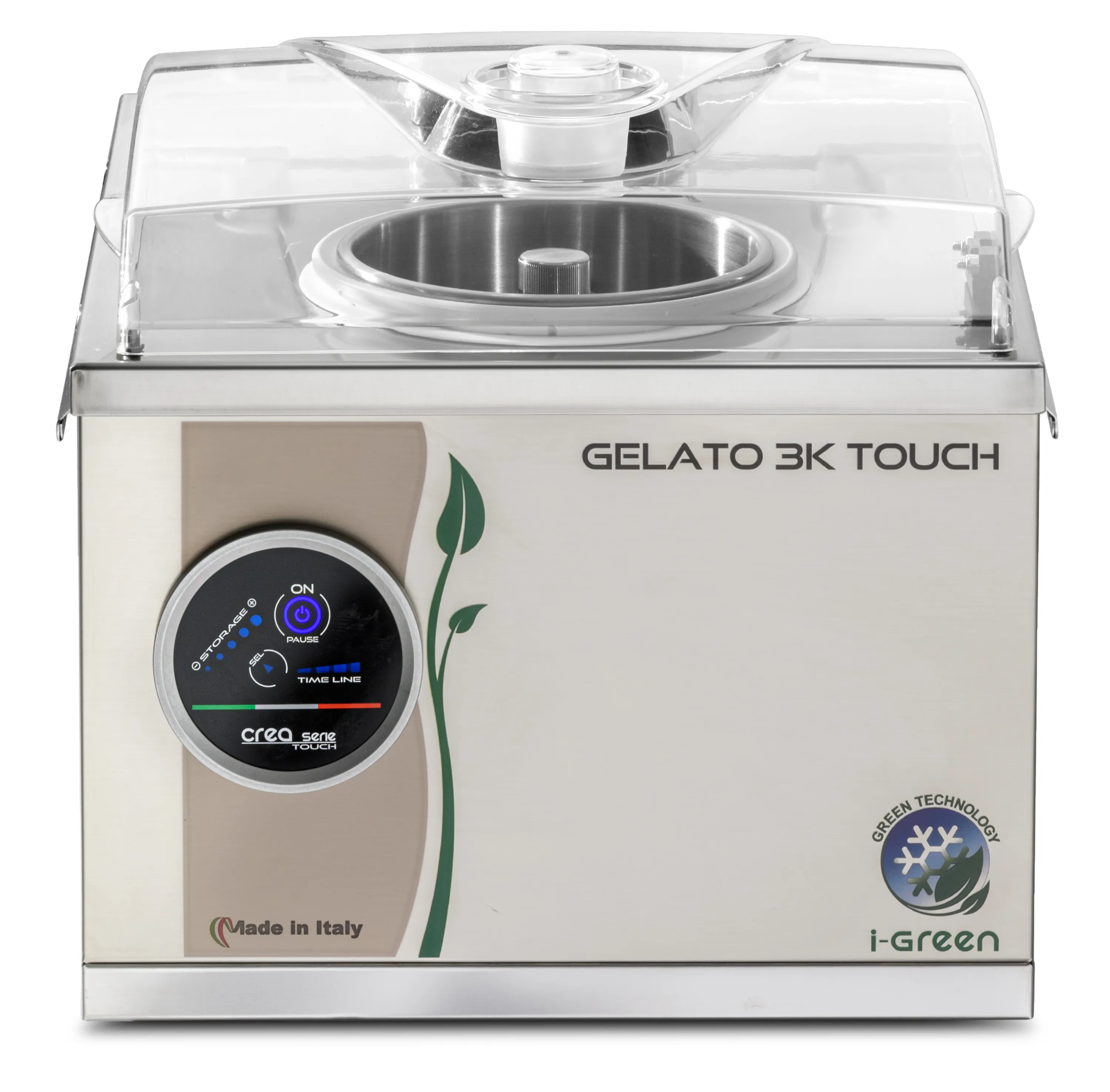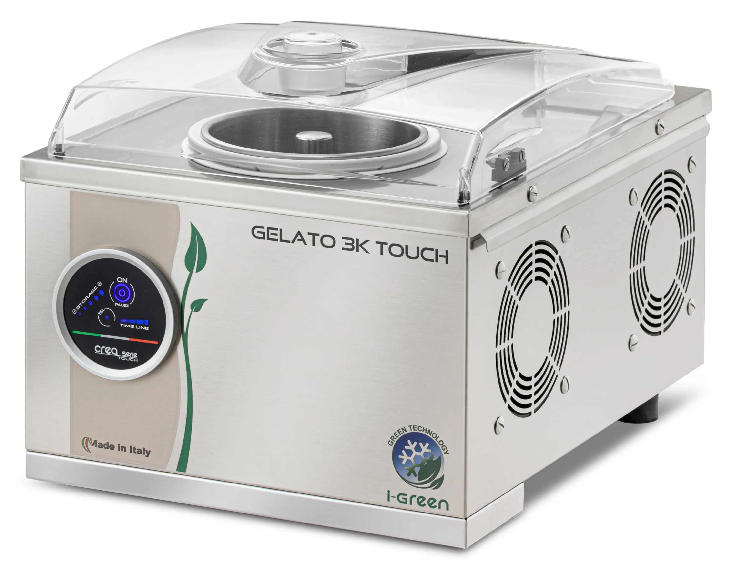 Die Gelato 3K Touch punktet durch ihr robustes Edelstahlgehäuse, einen herausnehmbaren Edelstahlbehälter und ihre intuitive Touch-Screen-Bedienung. Dank vollautomatischer Herstellung und Konsistenzkontrolle erzielen Sie stets perfekte, cremige Ergebnisse. In nur 12–15 Minuten ist Ihre Lieblings-Eissorte servierbereit.