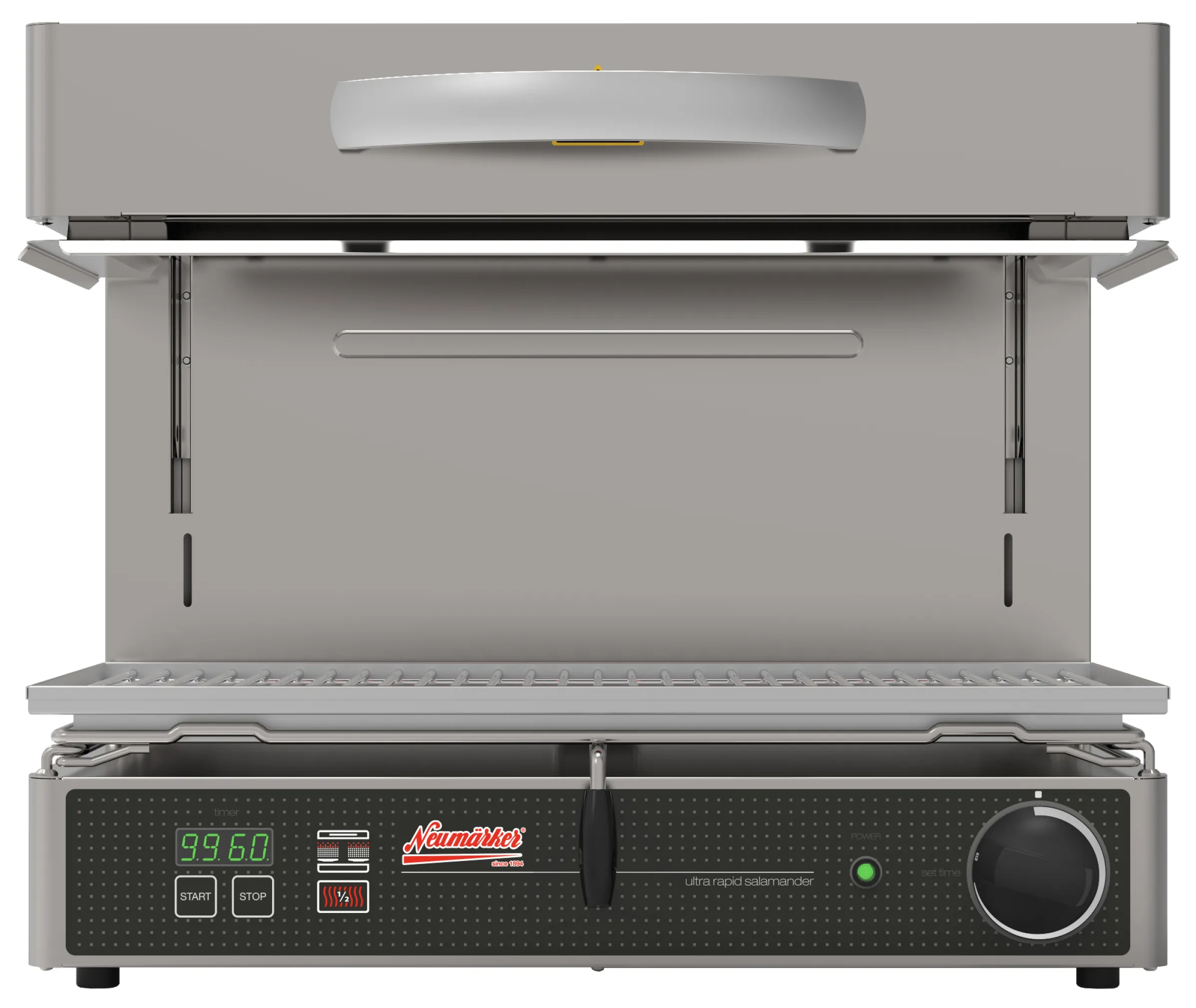 Der klare Vorteil für Ihr Team: Zeitersparnis und gleichbleibende Top-Ergebnisse – ob beim Gratinieren, Warmhalten oder Karamellisieren. Der Salamander lässt sich einfach bedienen, bietet mit großem Timer und Soft-Touch-Steuerung höchsten Komfort und ist robust für den täglichen Einsatz gebaut.