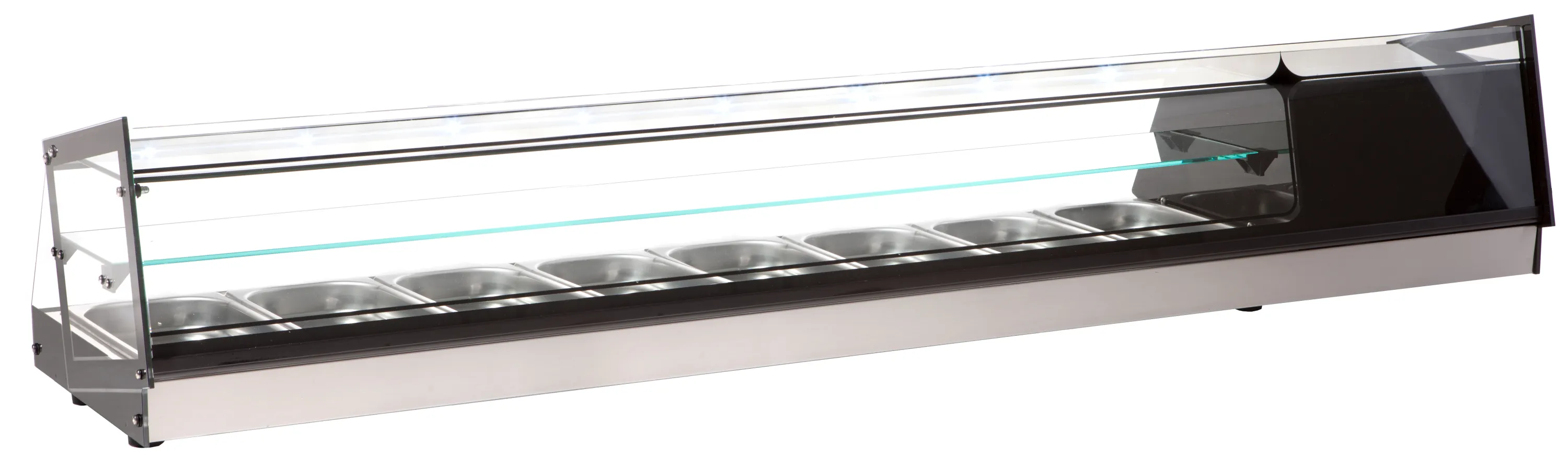 Ob als Sushi-Theke, für frische Antipasti, Kuchen, Kuchenstücke oder kalte Snacks – die Kühlvitrine Cube 8 passt sich flexibel Ihren Ansprüchen an. Die Klarheit des gehärteten Glases bietet einen ungehinderten Blick für Ihre Gäste und lädt zum Zugreifen ein. Die moderne Kühltechnik kombiniert energieeffizientes Arbeiten mit gleichbleibender Qualität, die Profis erwarten.