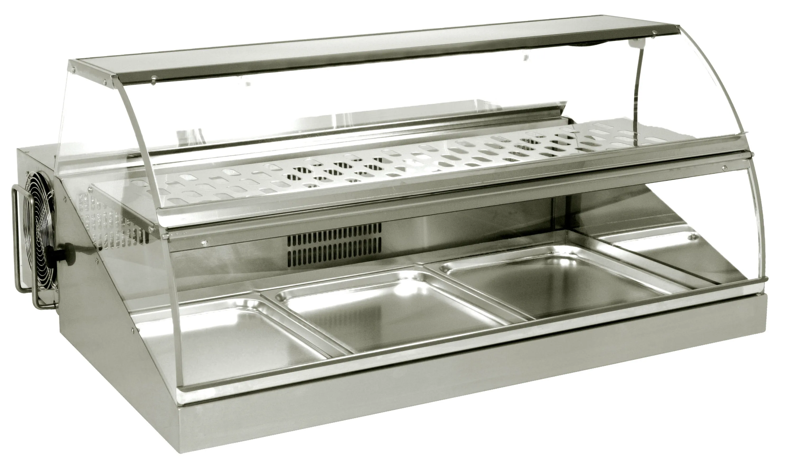 Mit kompakten Abmessungen von 1000 x 900 x 475 mm passt die Kühlvitrine auch in kleinere Geschäfte, Imbissbereiche oder Cafés und bietet optimale Präsentationsfläche auf wenig Raum. Drei Einschübe für 1/1 GN-Behälter ermöglichen variable Bestückung und flexible Nutzung je nach Tagesangebot oder Sortiment. (GN-Behälter sind nicht im Lieferumfang enthalten.)
