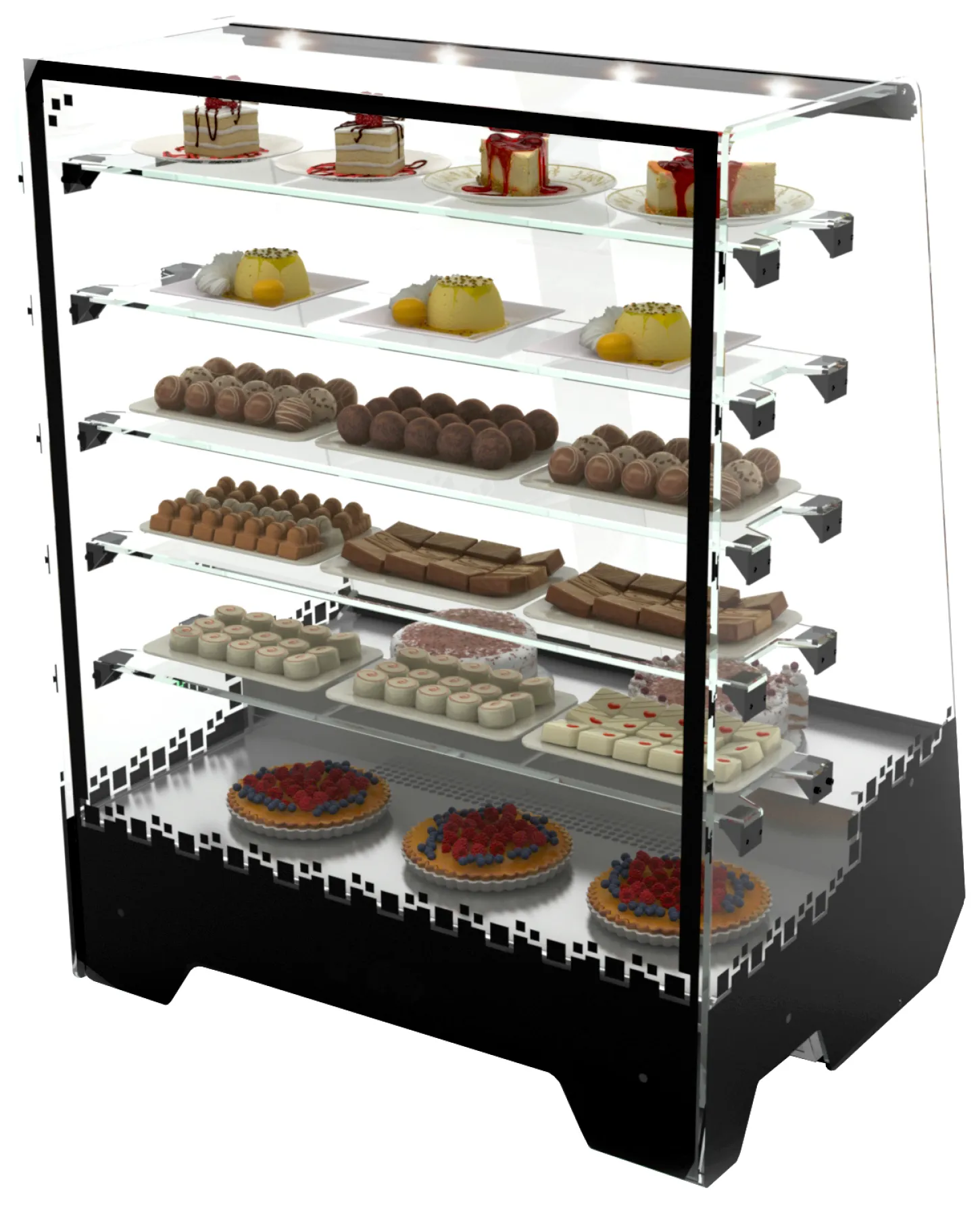 Die Neumärker Kühlvitrine Tower eignet sich ideal für ambitionierte Gastronomiebetriebe, Bäckereien, Hotelbuffets oder überall dort, wo Qualität auf professionelle Präsentation trifft. Ihre Gäste und Kunden werden von der klaren Sicht auf Ihre frischen Produkte begeistert sein. Das stilvolle und zeitlose Design passt perfekt in jede moderne Umgebung und wertet Ihr Angebot sichtbar auf.