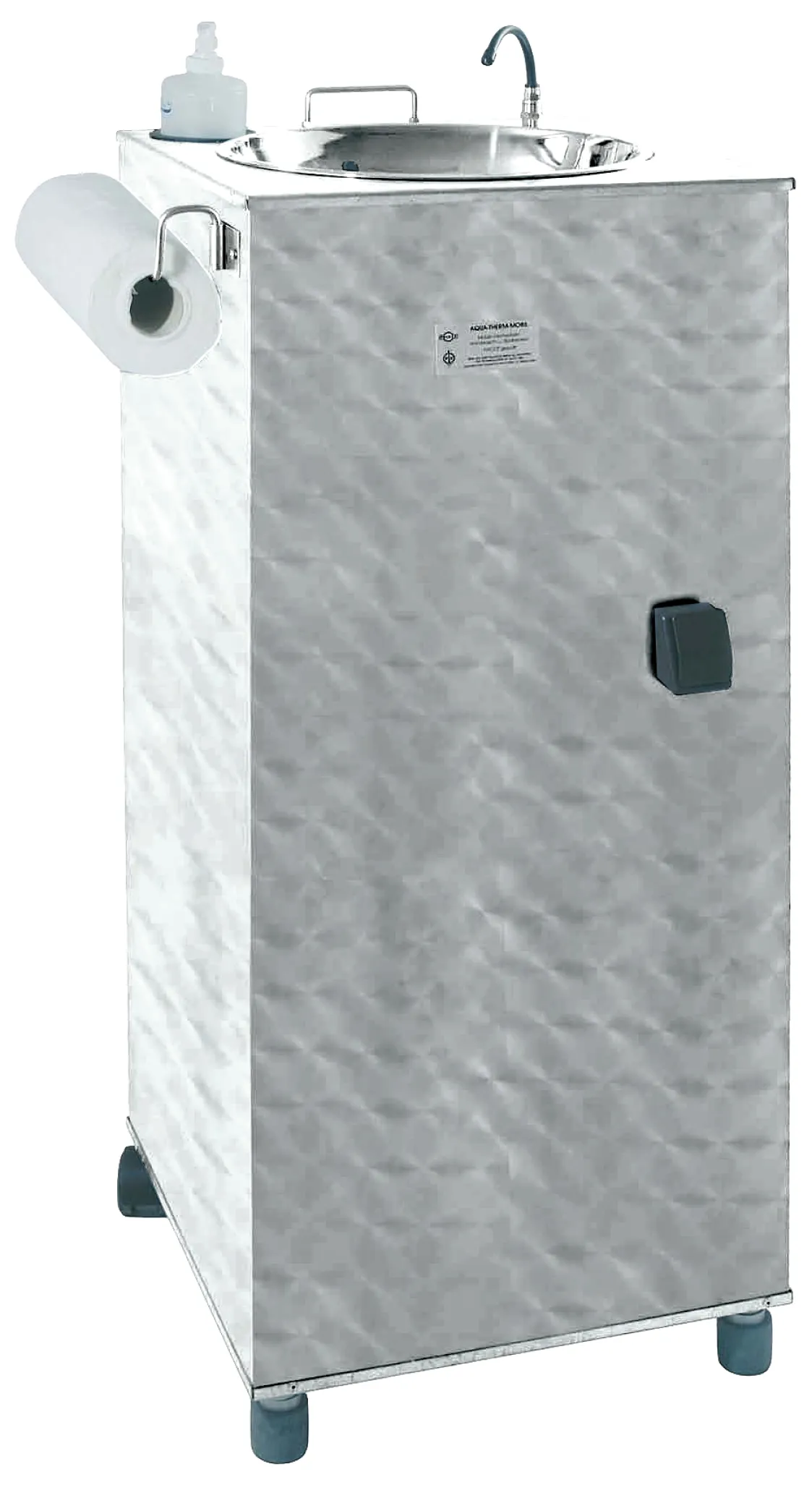 Das aus hochwertigem Edelstahl gefertigte Standbecken überzeugt durch seine durchdachte, langlebige Bauweise und durch clevere Features, die den Hygienestandard auf ein neues Level heben. Dank der kontaktlosen Kniebedienung waschen Sie Ihre Hände besonders hygienisch, ein 20-Liter-Frischwasserbehälter mit Wärmeisolierung sorgt jederzeit für frisches Wasser, und das integrierte Edelstahlbecken sowie der Abwasserauffangbehälter garantieren sauberes und sicheres Arbeiten – unabhängig vom Standort.