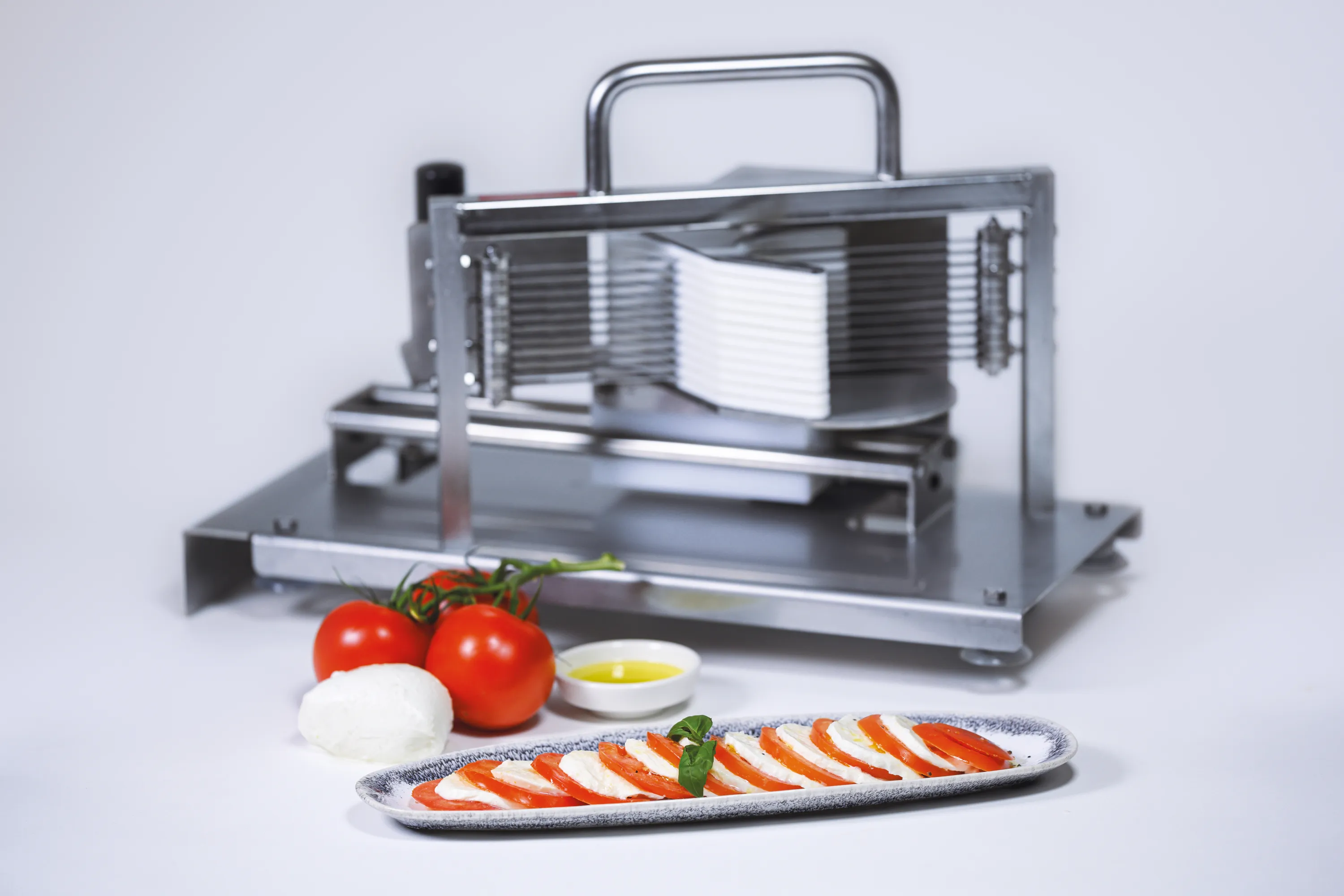 Mit dem Mozzarellaschneider Caprese holen Sie sich das perfekte Werkzeug für die schnelle und gleichmäßige Zubereitung von Mozzarella- und Tomatenscheiben in Ihre Küche. Ob für das beliebte Caprese-Sandwich, bunte Vorspeisen oder eine kreative Salatbar – dieses Profi-Gerät sorgt für exakte Scheiben und ein appetitliches Ergebnis bei jedem Einsatz.