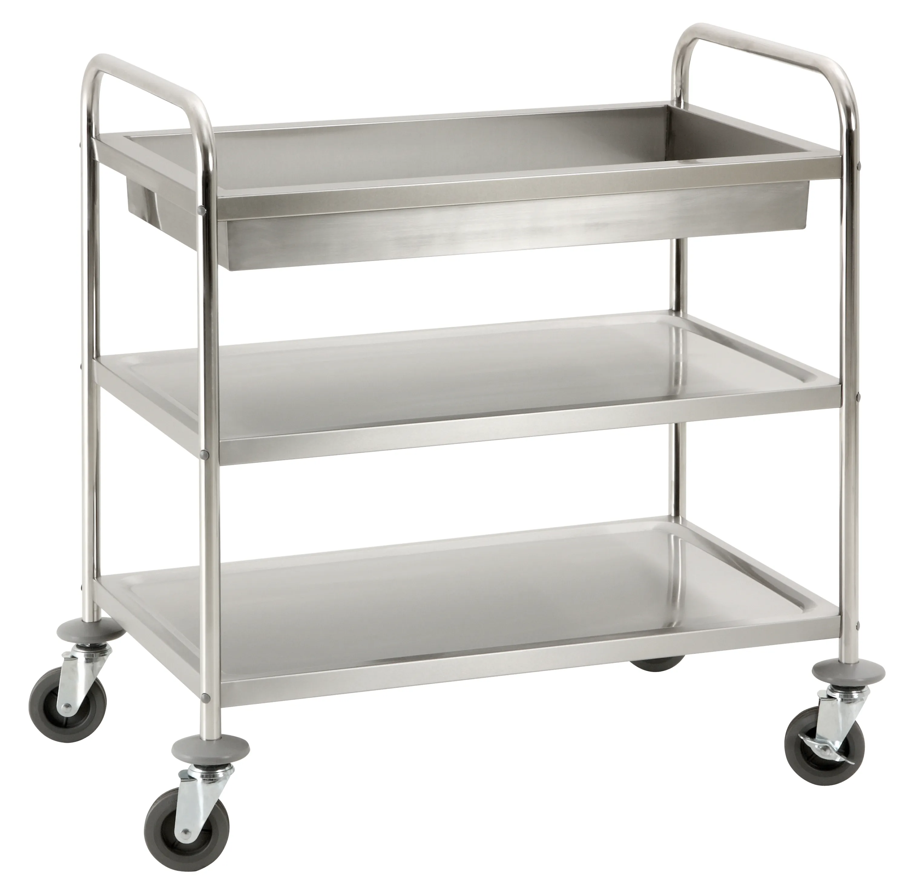 Die glatte Edelstahl-Oberfläche lässt sich schnell reinigen und bleibt auch bei intensiver Nutzung ansehnlich. Der ergonomische Griff und der optimale Abstand zwischen den Ablagen ermöglichen komfortables Arbeiten – ein unverzichtbarer Helfer für Köche, Servicekräfte und Hauswirtschaftspersonal.