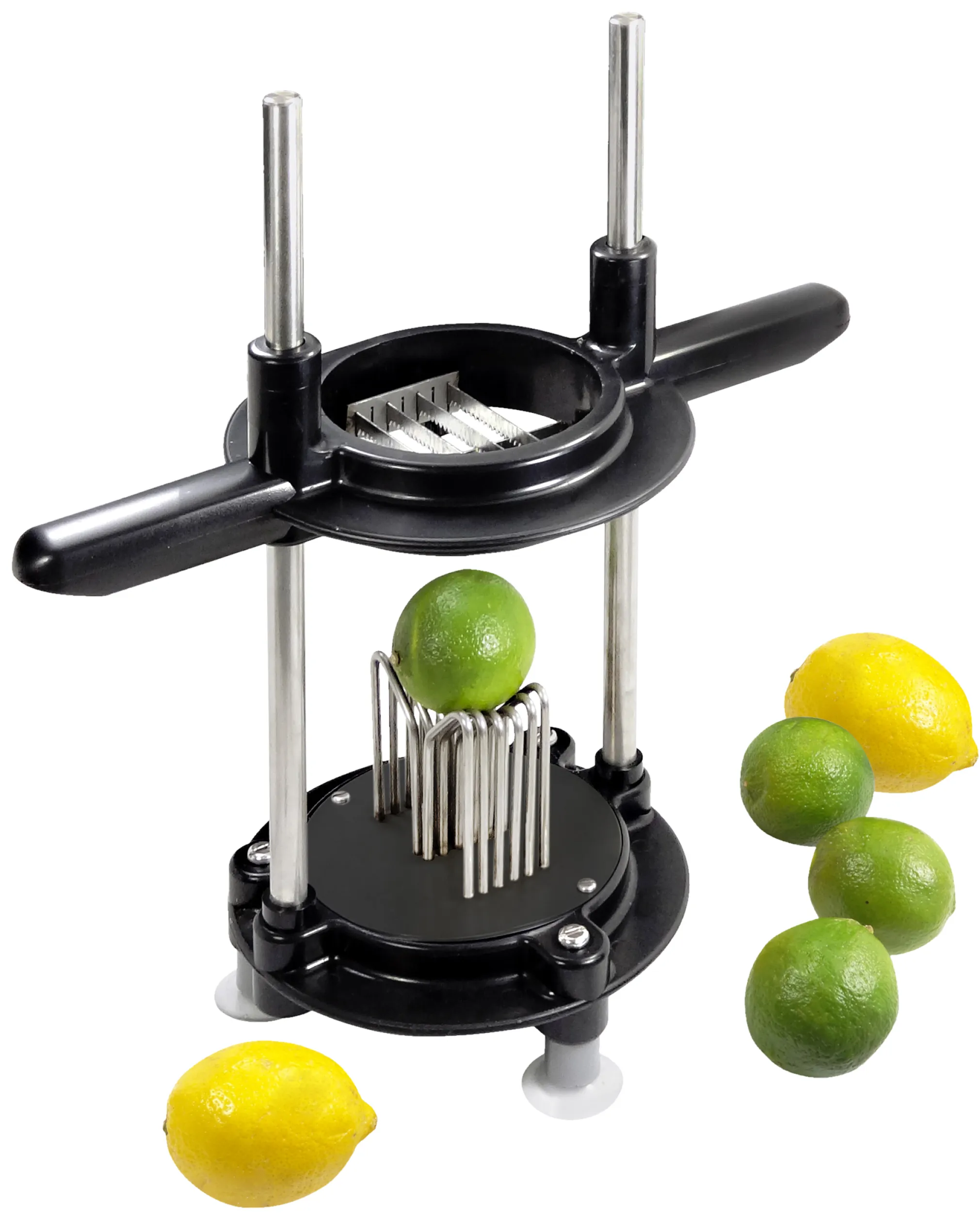 Ob für die professionelle Gastronomie, beim Cocktail-Abend zuhause oder im Café: Mit dem Zitrusschneider gelingen halbe oder Viertel-Scheiben aus Zitronen und Limetten im Handumdrehen – präzise, hygienisch und sicher. Mit seinen besonders scharfen Edelstahlmessern sorgt er für gleichmäßige Ergebnisse und ein ansprechendes Präsentieren.