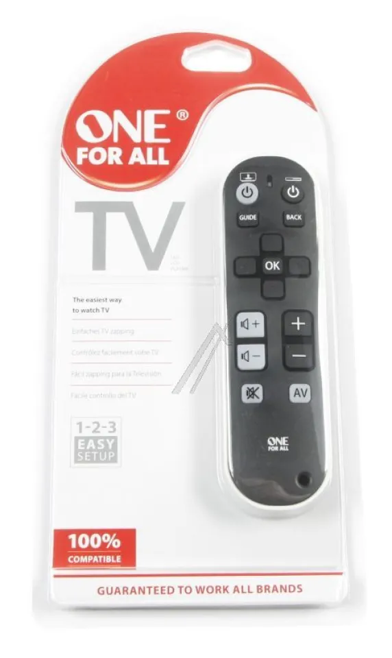 Die One for All URC 6810 Zapper Basic Universalfernbedienung bringt Einfachheit zurück in Ihren TV-Alltag. Mit nur einer Fernbedienung steuern Sie bis zu drei Geräte – zum Beispiel Fernseher, Set-Top-Box oder Soundbar. Das übersichtliche, ergonomische Design sorgt für eine intuitive Bedienung und ist besonders benutzerfreundlich.