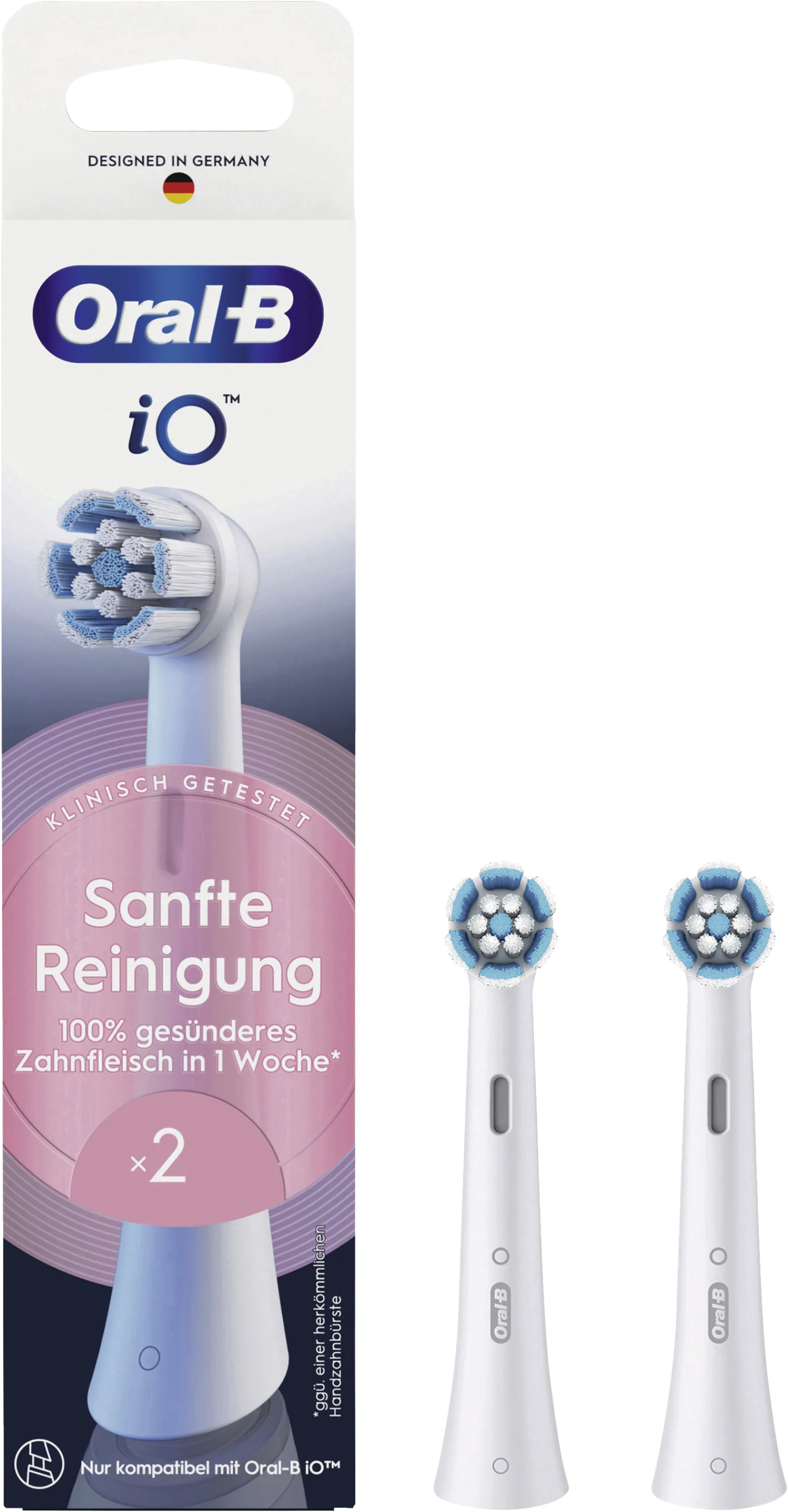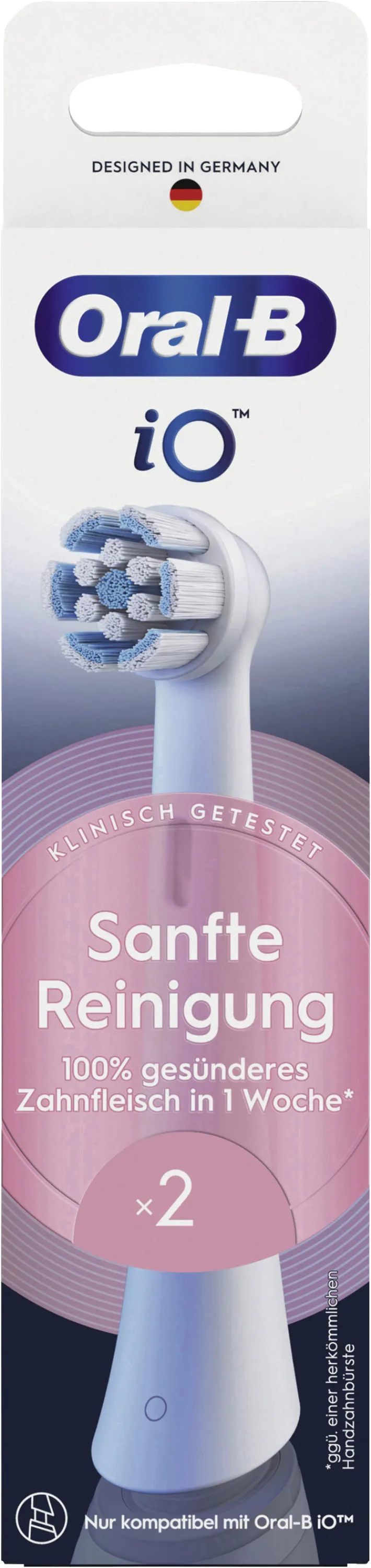 Braun Oral-B Aufsteckbürsten iO Sanfte Reinigung 373609, Ersatzbürsten 2er Pack, Mundpflege