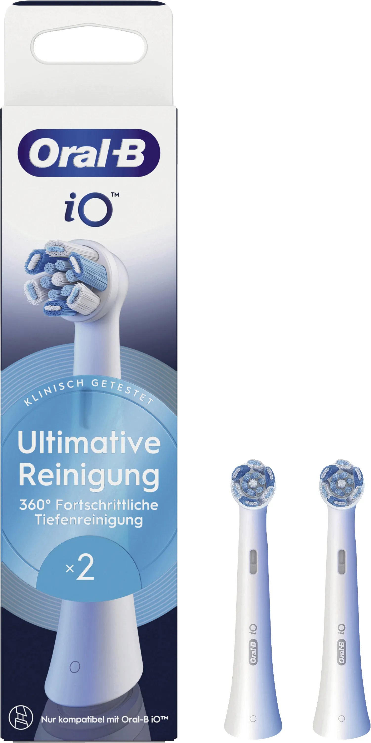 Oral-B Aufsteckbürsten iO Ultimative Reinigung 2er 373333, Ersatzbürsten für iO Zahnbürste, Weiß