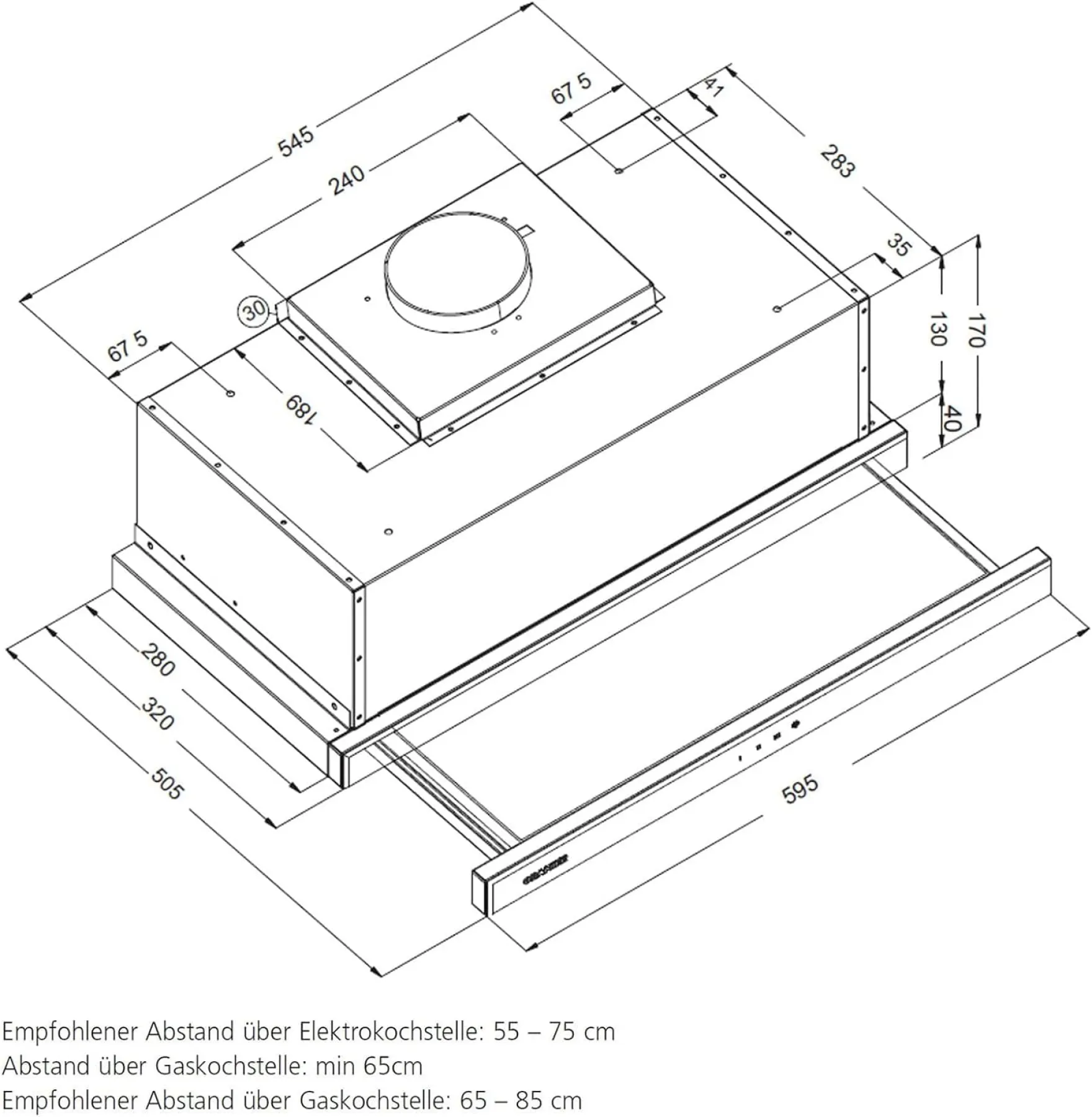 Ob im Umluft- oder Abluftbetrieb: Der Oranier FLA560 sorgt mit seiner dreistufigen Lüfterleistung und energieeffizienter LED-Beleuchtung für saubere Luft und ein angenehmes Ambiente beim Kochen. Die großzügige Glasblende in zeitlosem Schwarz wertet jede Küchenzeile optisch auf und bleibt dabei schlicht und unaufdringlich.