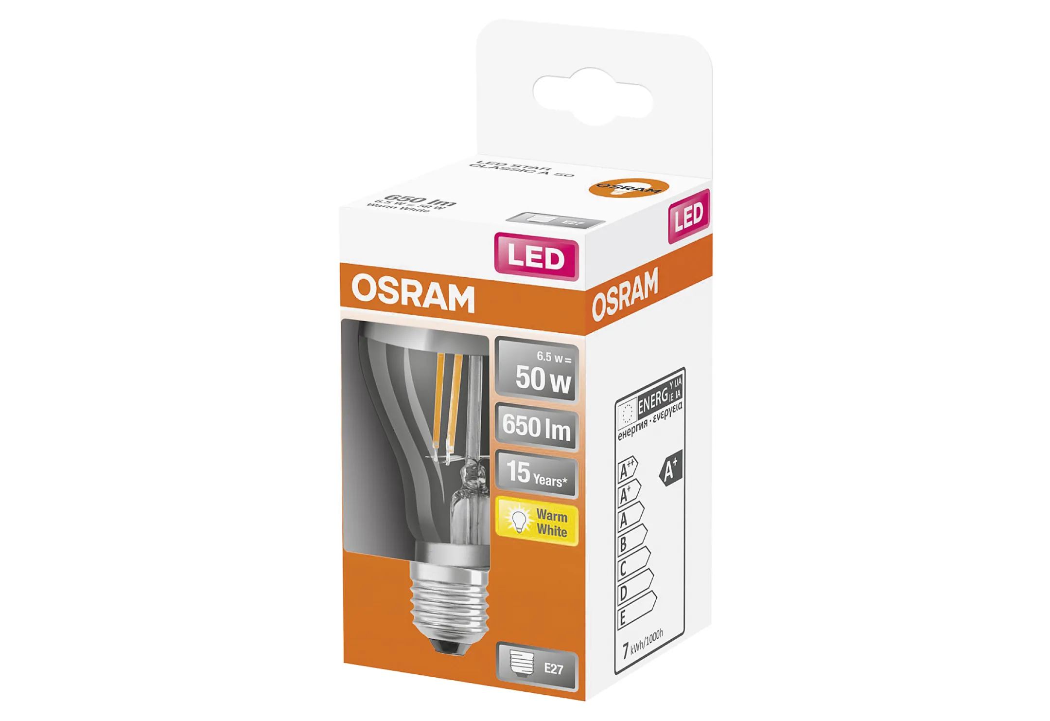 OSRAM LED Kopfspiegellampe A E27 650lm, 6,5W ersetzt 65W, warmweiß 2700K