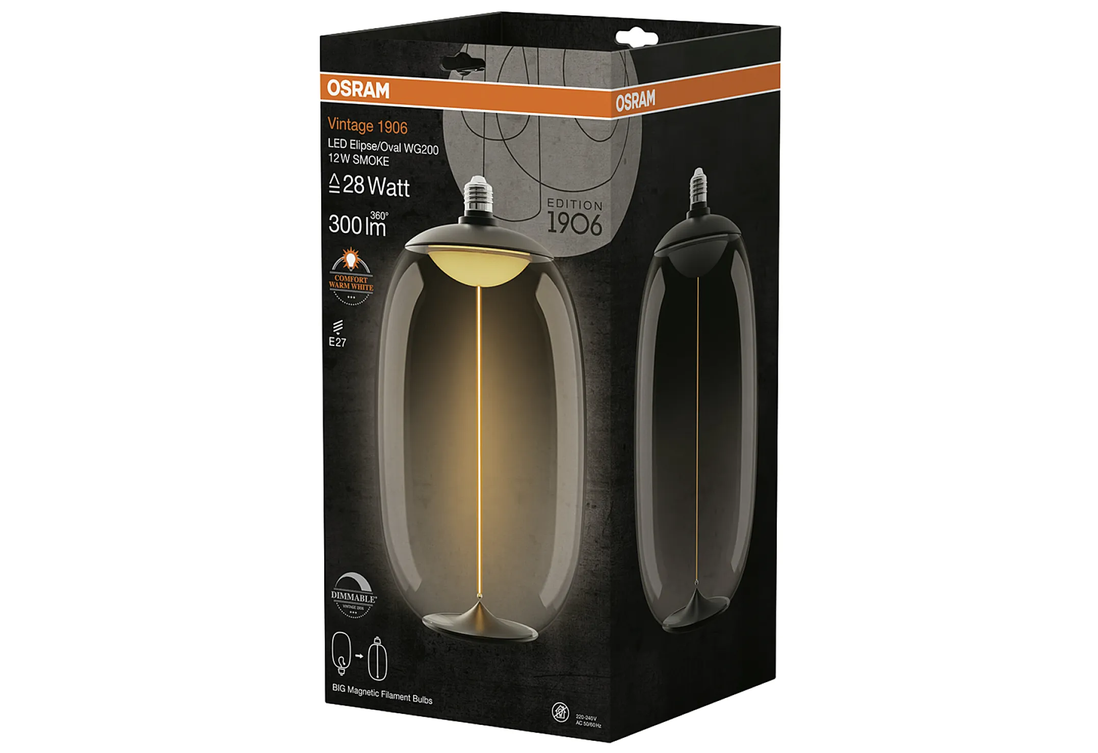 Die LEDVANCE Vintage 1906 Big Elipse Oval 12W ist eine außergewöhnlich große, dekorative LED-Kugellampe mit E27-Sockel. Sie sorgt in Ihrem Zuhause für ein angenehm warmweißes Lichtambiente und verbindet stilvolles Retro-Design mit moderner LED-Technologie. Dank innovativer Magnet-Filament-Technik und stufenloser Dimmfunktion genießen Sie maximale Flexibilität und Effizienz.