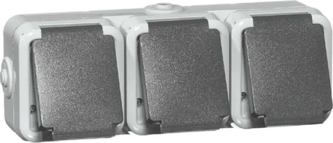 Die dreifache Aufputz-Steckdose überzeugt durch ihre hochwertige Verarbeitung aus halogenfreiem, widerstandsfähigem Thermoplast und die zuverlässige Technik nach VDE-Standards. Dank Schutzart IP44 ist sie besonders gegen Spritzwasser und Staub geschützt und somit auch hervorragend für anspruchsvolle Einsatzbereiche geeignet.