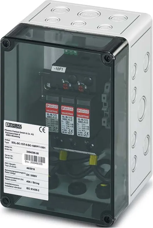 Ein sicherer und langlebiger Anschlussschrank ist das Rückgrat jeder PV-Anlage. Der Phoenix Anschlusskasten schützt wertvolle Komponenten und sorgt für eine stabile Stromzufuhr. Gerade bei Schwankungen im Stromnetz und witterungsbedingten Störungen ist ein zuverlässiger Überspannungsschutz unverzichtbar. Mit dem Phoenix Contact Anschlusskasten SOL-SC-1ST-0-DC-1MPPT-2001 investieren Sie in die Zukunftssicherheit Ihrer Photovoltaik-Lösung – egal ob auf Hausdächern, in Gewerbeanlagen oder bei Solarparks.