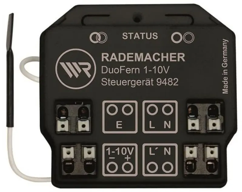 Das Rademacher 9482 Steuergerät 1-10V DuoFern überzeugt durch zuverlässige Funktechnik (434,5 MHz, Rollingcode-System) und hochwertige Verarbeitung. Das robuste, halogenfreie Kunststoffgehäuse (RAL 9005, schwarz matt) ist langlebig und dezent. Die Montage ist auch für Heimwerker problemlos möglich.