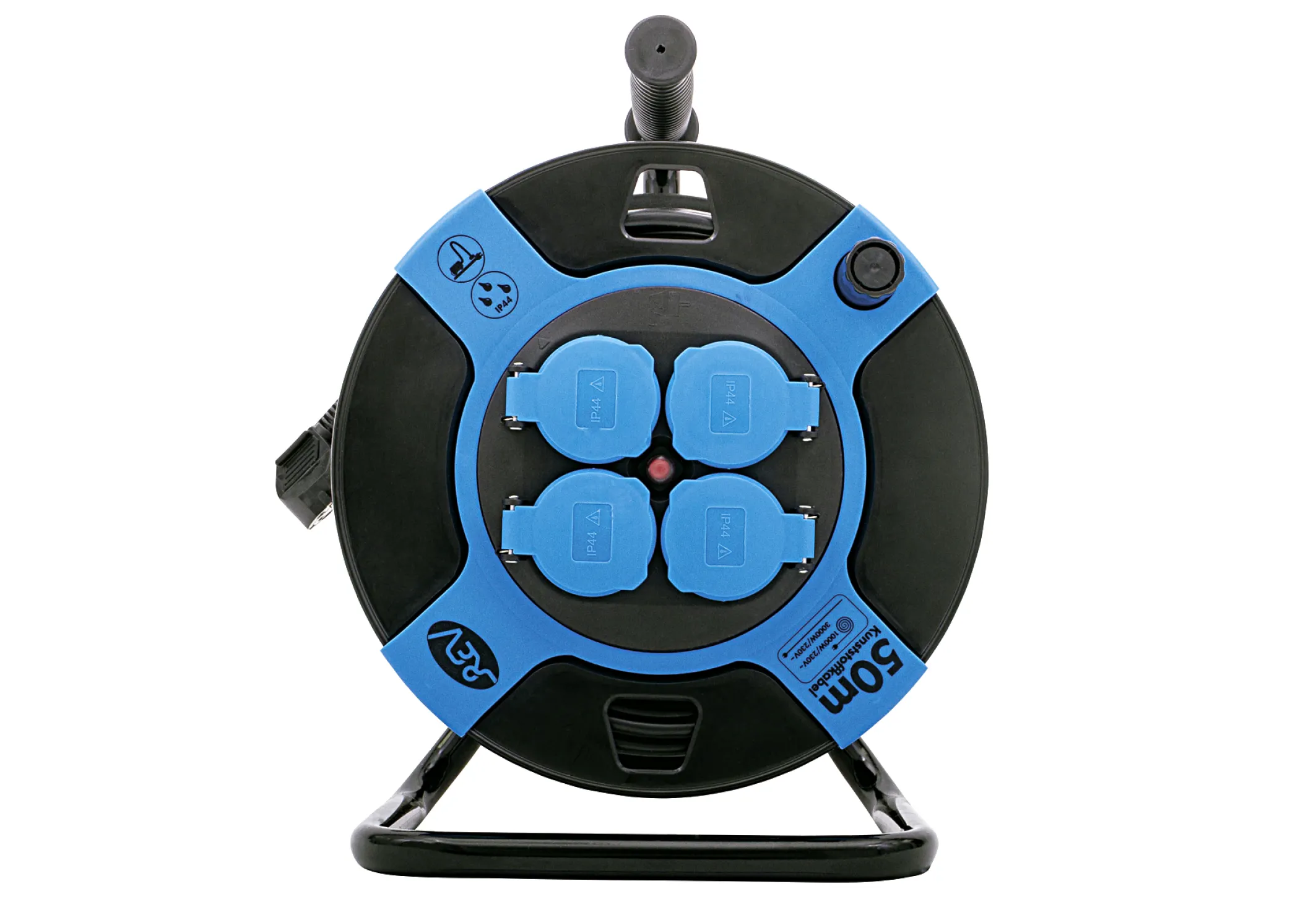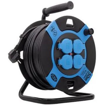 REV Kabeltrommel 50m KS H05VV-F 3G1,5, 4 Steckdosen IP44, 3000W