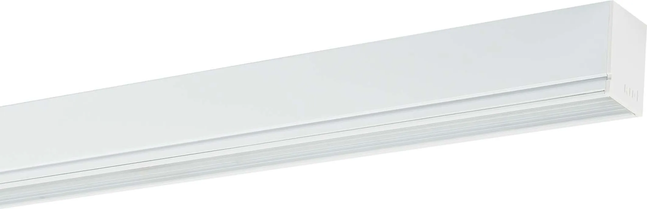 Lichtleiste LED, Einzelleuchte, zur Anbau- und Pendelmontage. Schmale, verwindungssteife profilierte Lichtleiste mit Geräteträger aus Stahlblech, weiß (ähnlich RAL9016) oder silber (SI, ähnlich RAL9006) kunstharzbeschichtet. LED-Träger aus pulverbeschichtetem Aluminiumstrangpressprofil, in den Geräteträger eingeclipst. Lineare RIDI-LED-Module über gesamte Länge mit dem Aluminiumprofil über patentiertes Befestigungsverfahren verbunden für optimale gleichmäßige Wärmeableitung. Die LED-Module sind bis zu den LED-Trägerenden mit LEDs bestückt. Längsoptik aus extrudiertem, schlagzähem, UV-beständigem PMMA. Geräteträgeroberseite mit Kanal für externe Durchverdrahtung, max. 3x1,5 mm², bzw. ø 8 mm. Zwei Kabeleinführungen auf der Geräteträgeroberseite. Endstirnteile aus schlagfestem, UV-stabilisiertem PC mit Ausbrechöffnung in die Leuchte, Durchmesser 11mm und Ausbrechöffnung in Rille auf Leuchtenoberseite Breite 8,5mm. Leuchtenausführung weiß mit Stirnteilen in Farbe weiß, Leuchtenausführung silber (SI) mit Stirnteilen in Farbe staubgrau RAL7037. LED-Linearmodule bestückt mit Mid-Power LEDs für gleichmäßige Ausleuchtung und maximale Effizienz. Farbtoleranz < 3 Step Mac Adam (initial). Betrieb der LED-Module in Schutzkleinspannung kleiner 60 Volt (SELV-konform). Nennlebensdauer: Umgebungstemperatur -20°C bis +40°C LED-Komponenten: L80B50 > 50.000 Stunden Linearoptiken mit breit strahlender Lichtverteilung, extrudiert aus klarem, schlagzähem, UV-beständigem PMMA, flächenbündig integriert in den LED-Träger. Direkt strahlend. Montage: Zur direkten Montage an normal entflammbaren Materialien geeignet. Einfache, kostengünstige Einmannmontage mit Schrauben durch die Schlüssellöcher im Leuchtenoberteil oder mit flexiblem Befestigungsabstand über Befestigungsklammern (Zubehör). Für die Pendelmontage sind Befestigungssätze verfügbar, siehe Zubehör.