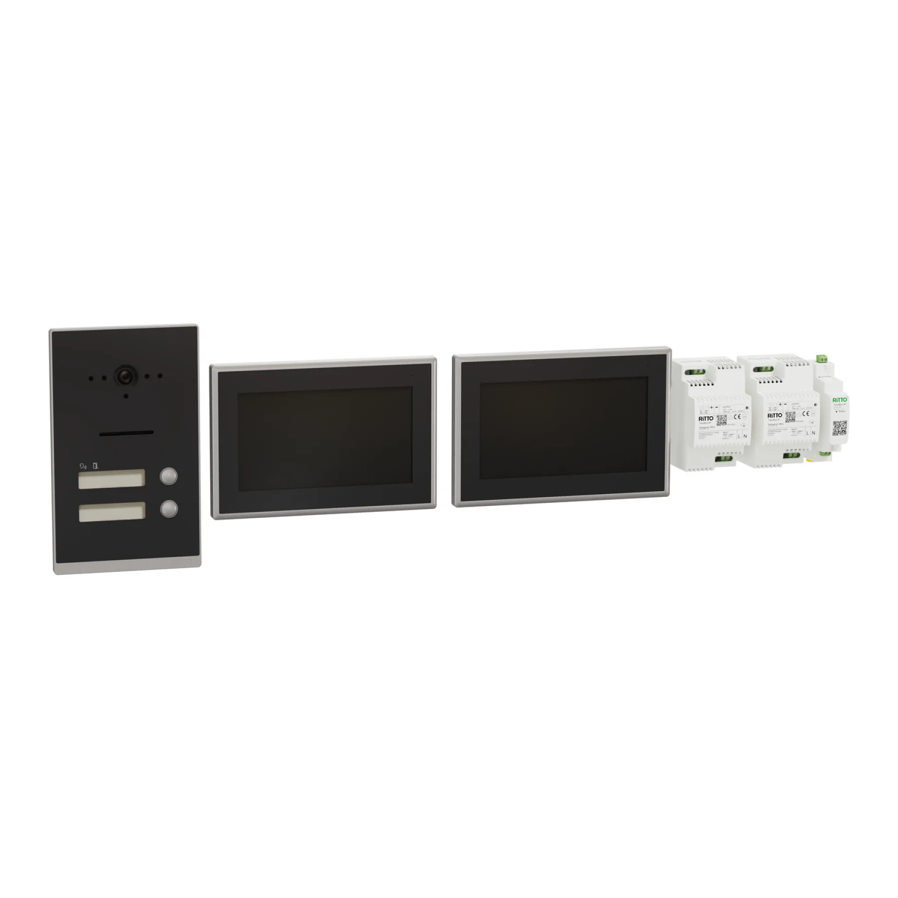Das RITTO Listo Video Zweifamilienhaus-Set TwinBus IP ist die ideale Lösung für moderne Zweifamilienhäuser und kleine Mehrfamilienhäuser, die Wert auf Sicherheit, Komfort und stilvolles Design legen. Mit innovativer 2-Draht-Technik, smarter Video-Kommunikation und hochwertiger Verarbeitung in Anthrazitgrau bringt dieses Set zeitgemäße Technik direkt an Ihre Haustür.