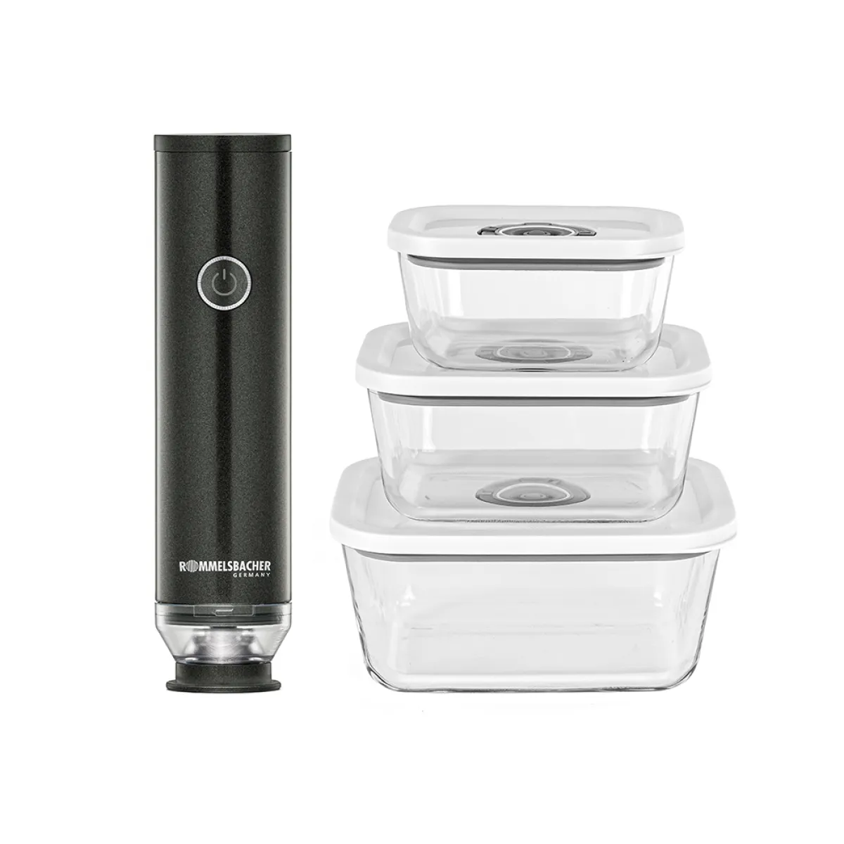 Rommelsbacher Hand-Vakuumierer Set VAC 253/S, Akkubetrieb, 3 Glasbehälter