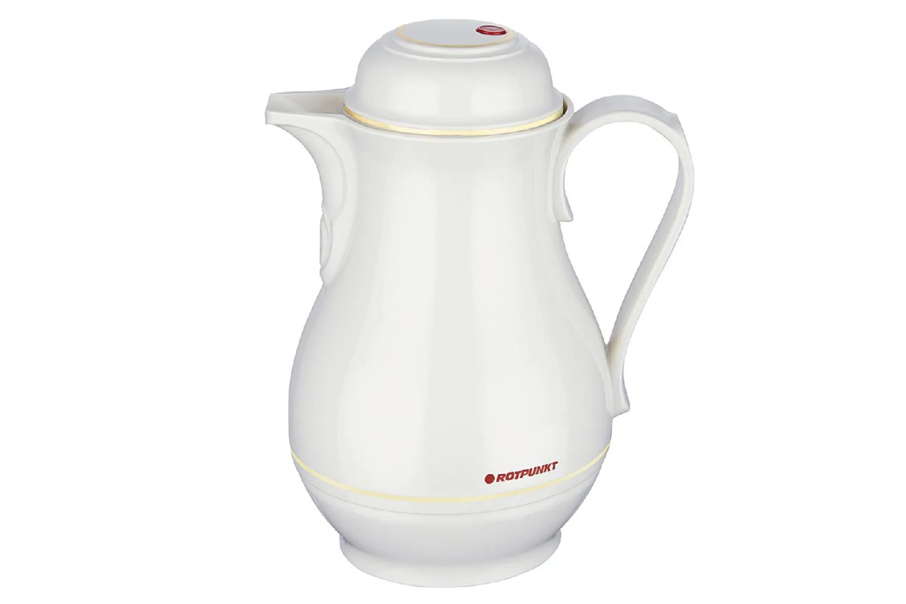 Genießen Sie Ihren Kaffee oder Tee jederzeit stilvoll und perfekt temperiert: Die ROTPUNKT Isolierkanne 330 in edlem Porzellanweiß mit dekorativem Goldrand vereint klassische Eleganz mit modernster Isoliertechnik. Das hochwertige Design macht diese Thermoskanne zum Blickfang auf jedem Tisch – ob beim stilvollen Sonntagskaffee, im Büroalltag oder beim Picknick.