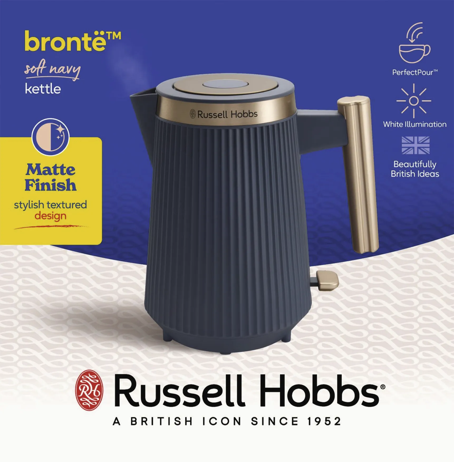 Der Brontë Wasserkocher in der modernen Farbvariante Soft Navy ist die perfekte Kombination aus zeitloser Eleganz, hoher Funktionalität und innovativer Technik. Für alle, die Teegenuss oder blitzschnelles Wasserkochen lieben, bietet dieses Gerät stilvolles Design und leistungsstarke Features für Ihre moderne Küche.