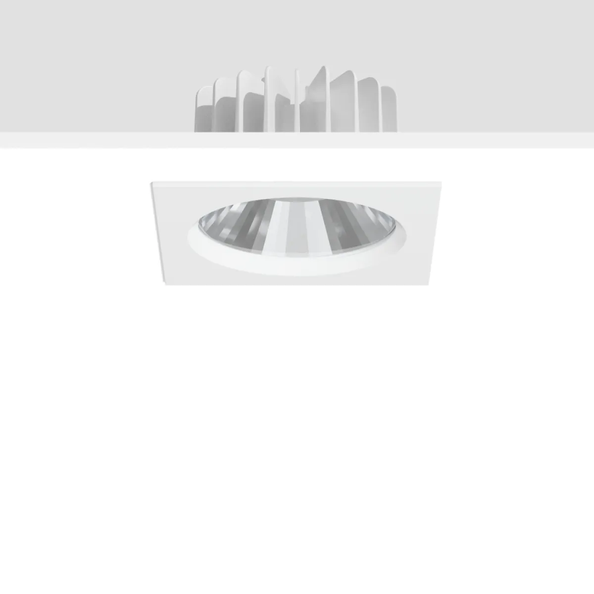 LED-Einbau-Downlight für höchste Ansprüche an Technik und Design. Gehäuse Aluminium-Druckguss als Kühlkörper ausgelegt. Quadratische Abdeckplatte Aluminium-Druckguss pulverbeschichtet. Auch die quadratische Ausführung mit rundem Deckenausschnitt. Geschlossene Ausführung. Abdeckung Einscheiben-Sicherheitsglas (ESG) klar. Serienmäßig mit Gore Protective Vents Membranventil zur Kondenswasservermeidung. Leuchte hält die hohe Schutzart auch einbauraumseitig in der Zwischendecke ein (gilt nicht für Betriebsgerät, IP 20). Viersegment-Facettenreflektor Aluminium mattiert mit hochglänzender Lichtmischkammer. MultiLumen: Einstellbarkeit des Leuchtenlichstroms in verschiedenen Stufen. Beste Farbwiedergabe Ra>90. Werkzeugloser Einbau durch Federbefestigung. Inklusive angeschlossenem Betriebsgerät in separater Gerätebox. Mit Verbindungsleitung L 250 mm. Für Durchgangsverdrahtung mit separat erhältlichem Zubehör geeignet. Durchgangsverdrahtungsbox (5-polig) als Zubehör erhältlich. Ballwurfsicher nach DIN 18032-3. Zugelassen für den Einsatz in der Lebensmittel- und Getränkeindustrie.
