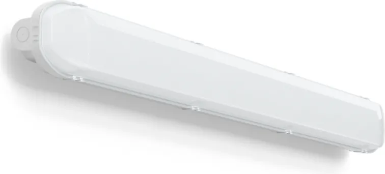 Klassische Feuchtraumwannenleuchte mit zweiteiligem Leuchtenaufbau. Gehäuse aus schlagzähem, UV-beständigen Kunststoff (Polycarbonat). Eingespritzte Dichtung auf Silikonbasis mit erhöhter Beständigkeit auch unter extremen Bedingungen. Diffusor aus UV-beständigem opalen Kunststoff (PMMA) mit hervorragender Lichtdurchlässigkeit von bis zu 90%. Befestigung des Diffusors durch Edelstahlclips zum einfachen Montieren und Öffnen. Lichtverteilung symmetrisch. Homogene Ausleuchtung. Flexible und einfache Installation durch verschiebbare Schnellbefestigungsklammern aus Edelstahl und Diffusor mit integriertem Geräteträger sowie variabler Kabeleinführung (stirn- oder rückseitig). Geeignet für Deckenanbau, Ketten- oder Seilpendel, Wandanbau. Deckenmontagebügel aus Edelstahl und Triangel-Bügel für Pendelmontage im Lieferumfang enthalten. MultiLumen: Einstellbarkeit des Leuchtenlichtstroms in 2 Stufen. Werkseitig auf HO (High Output - hoher Lichtstrom) voreingestellt. Serienmäßig mit Durchgangsverdrahtung (2,5mm2). Leuchten mit begrenzter Oberflächentemperatur nach DIN EN 60598-2-24 zur Verwendung in einer Umgebung, in der eine Ablagerung von leitfähigem Staub auf der Leuchte erwartet werden kann. Zugelassen für den Einsatz in der Lebensmittel- und Getränkeindustrie. Zur Beleuchtung von öffentlichen Parkbauten und öffentlichen Parkplätzen nach DIN 67528 geeignet. Umweltfreundlich und ressourcenschonend durch austauschbare Komponenten. Keine Einwegleuchte.