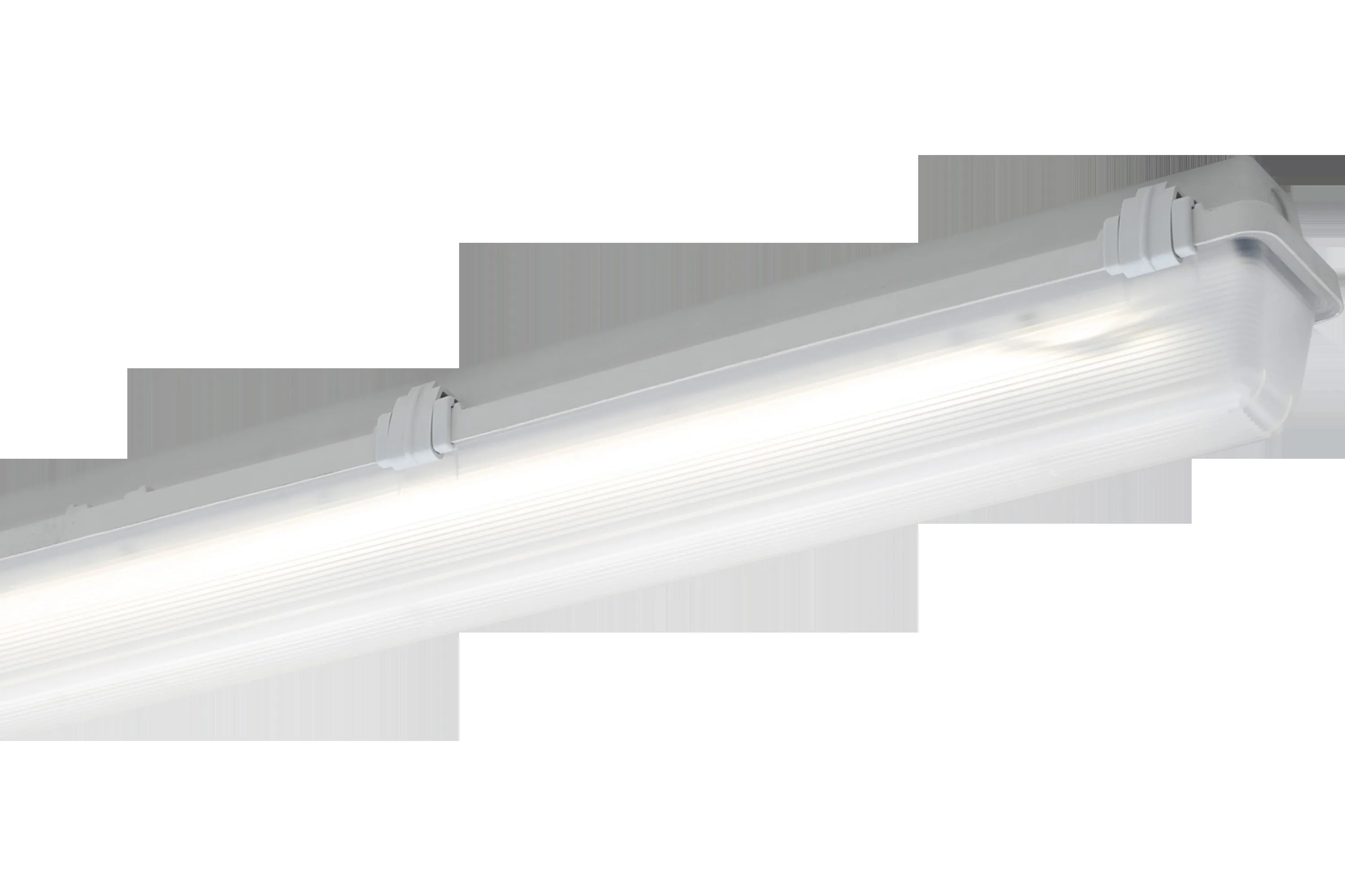 LED-Feuchtraum-Wannenleuchte, 10 W, 1390 lm, SKI, IP65, symmetrisch-breitstrahlend, 4000 K, Ra= 80, Ta -40 °C/+65 °C, L70>100000 h (@ Ta max), L80>70000 h (@ Ta max), L90>50000 h (@ Ta 25°C), Wanne PC satiniert, Verschluss Kunststoff, Gehäuse glasfaserverstärktes Polyester, Farbe grau, EAN/GTIN:4041254278476.Robuste LED-Feuchtraum-Wannenleuchte für hohe Umgebungstemperaturen und Weittemperaturbereiche. Hochschlagfestes glasfaserverstärktes Polyestergehäuse und satinierte Abschlusswanne mit hoher Schlagfestigkeit. Mehrteilige unverlierbare Verschlussklammern, davon zwei Sicherheitsverschlüsse, Silikondichtung. Lackierter Aluminiumreflektor mit hocheffizienten Zhaga-konformen LED-Modulen und EVG mit Überlast- und Kurzschlussschutz.