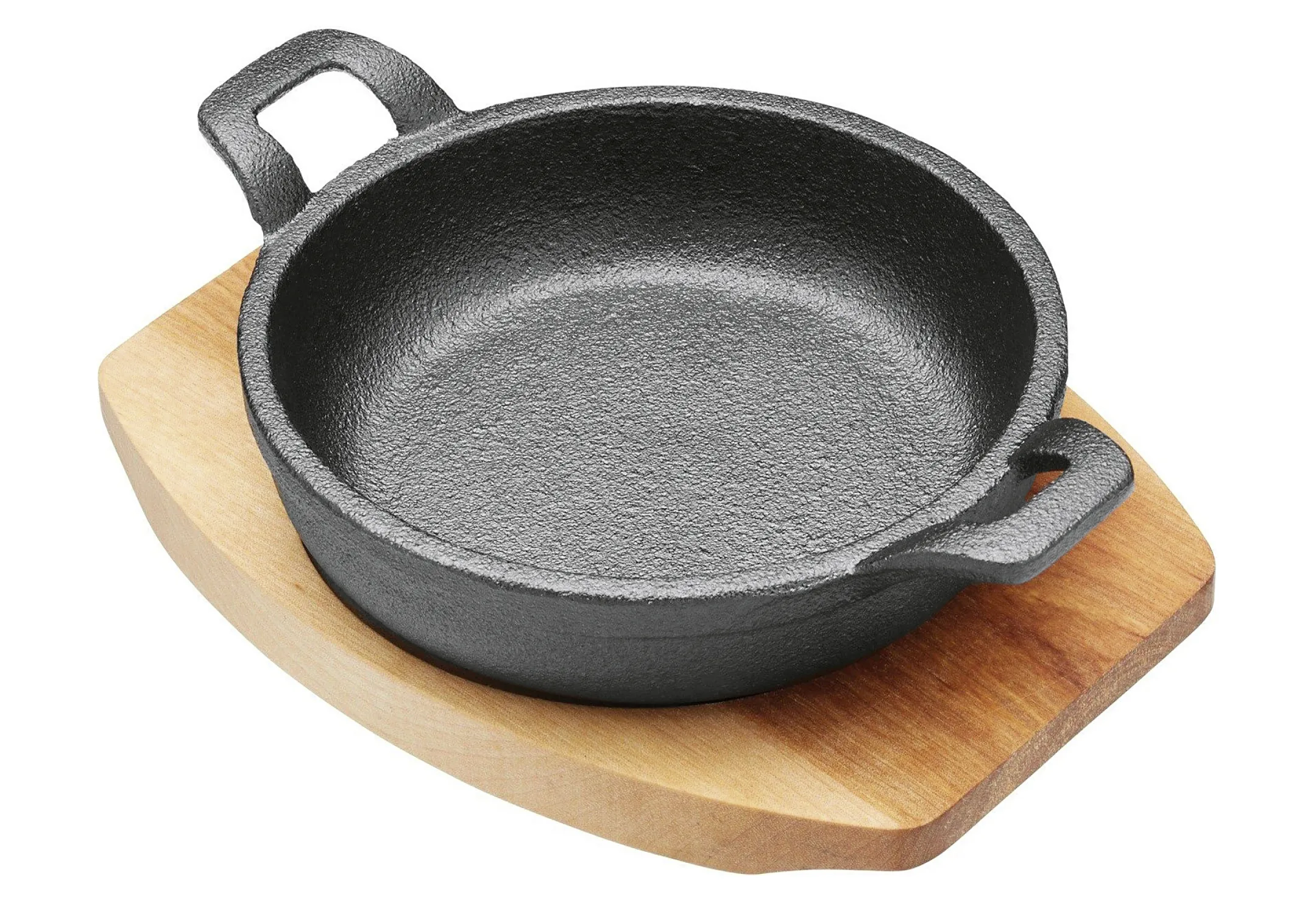Karl Krüger Servierpfanne Toledo 18 cm, Eisenguss, Holzteller